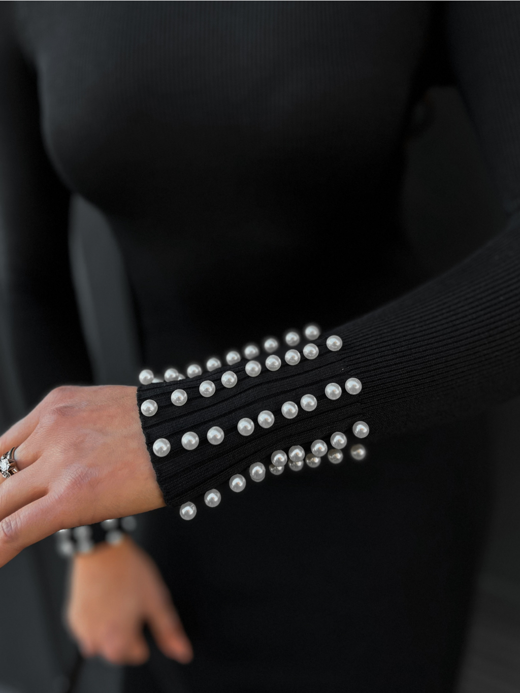 Černé šaty DOLUNAY s perličkovým rolákem