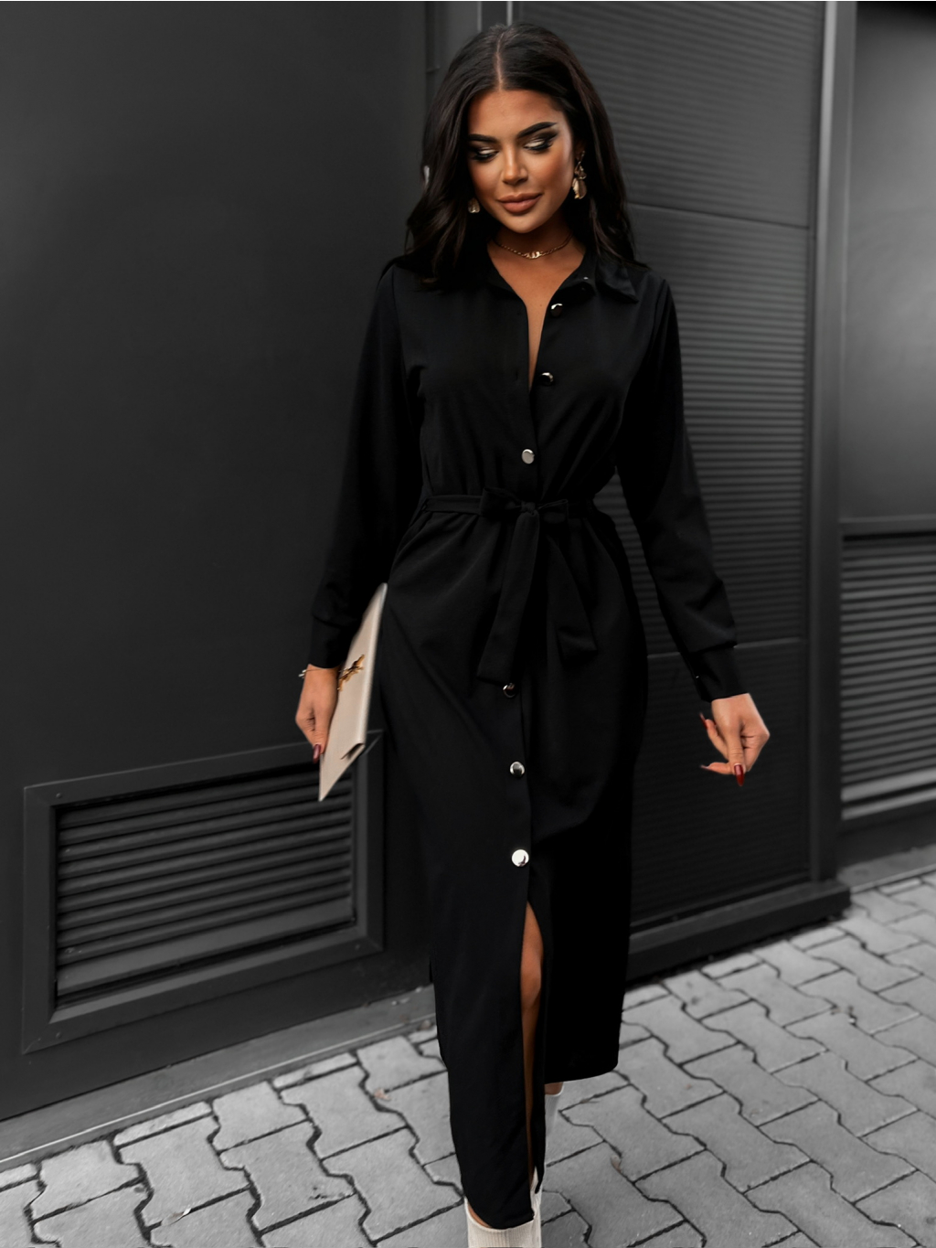 Černé šaty NEHIR s páskem