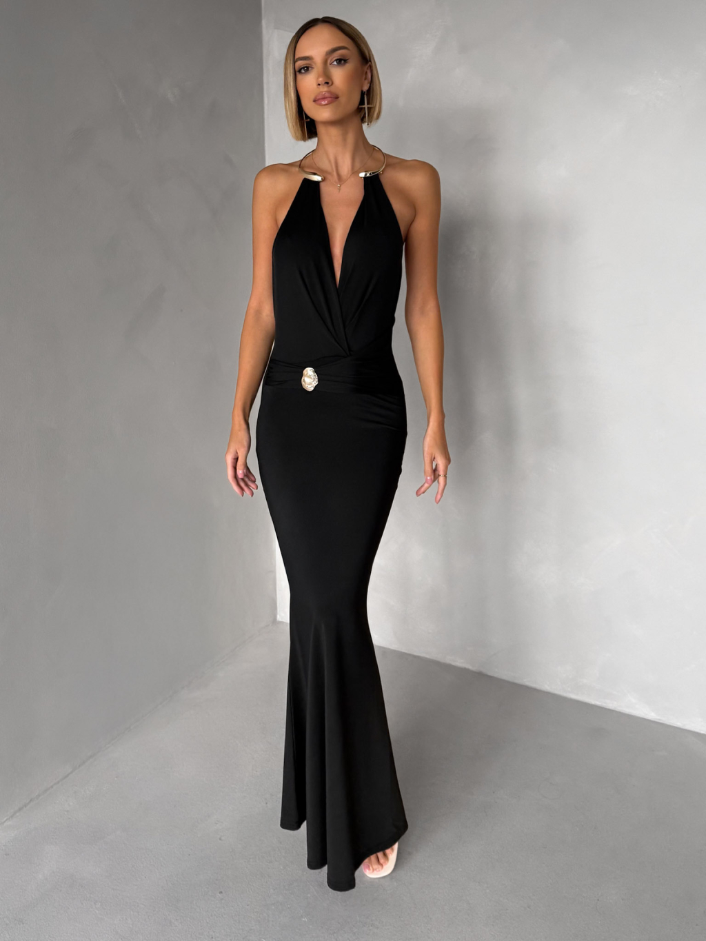 Černé společenské dlouhé šaty ARKENY s ozdobou