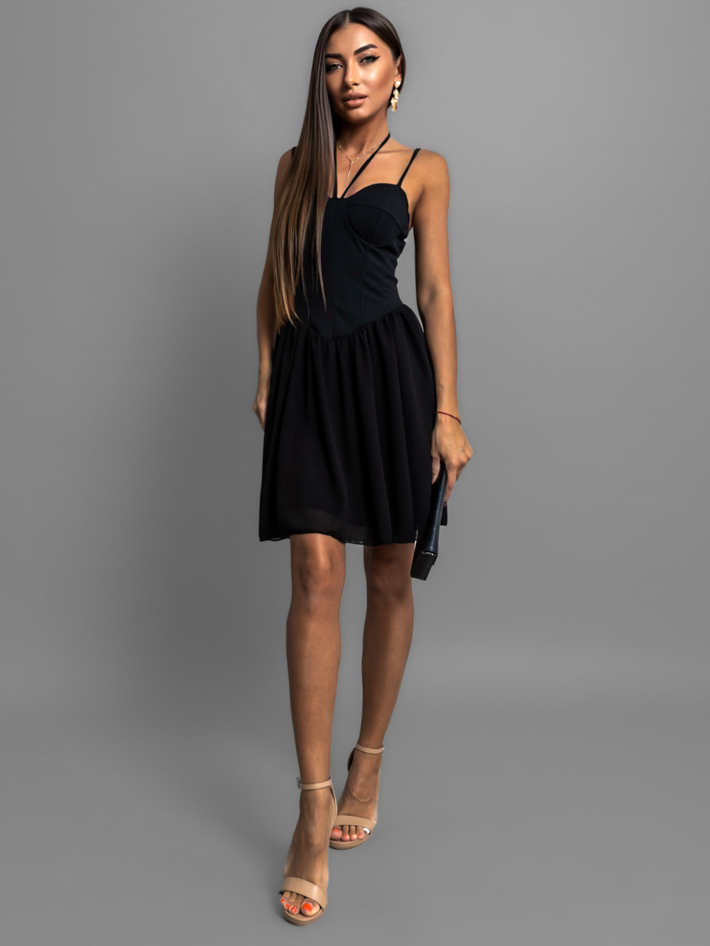 Černé stylové šaty LINOS na ramínka