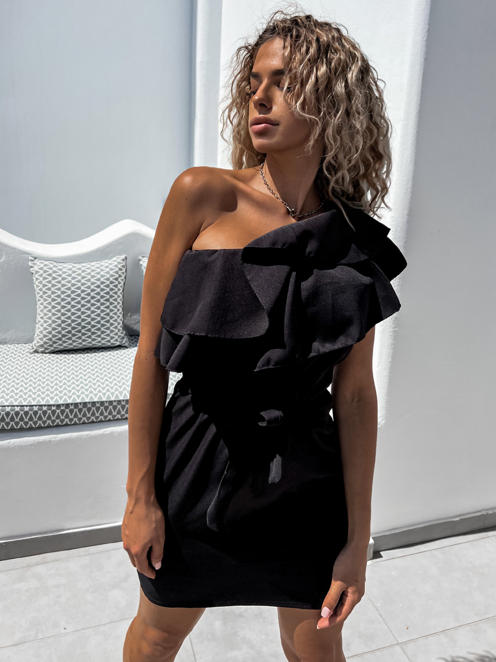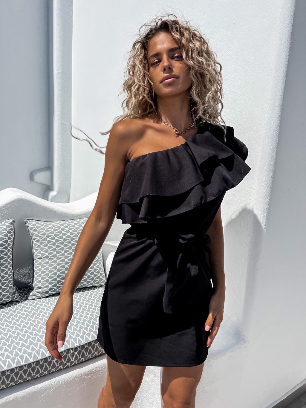 Černé volánkové šaty PURPOSE s vázáním