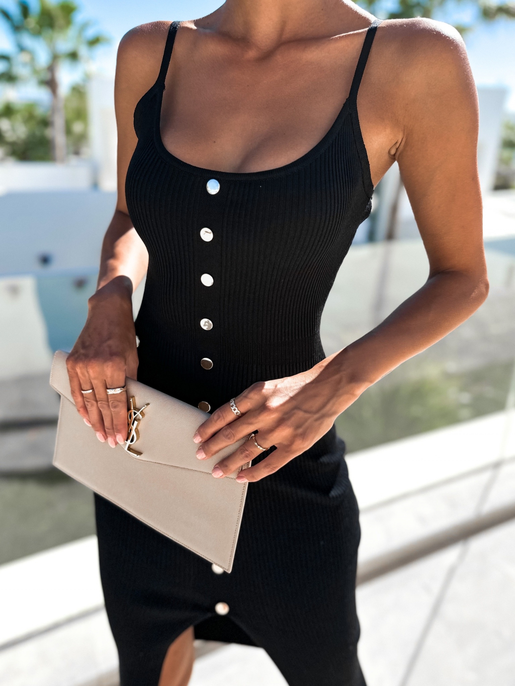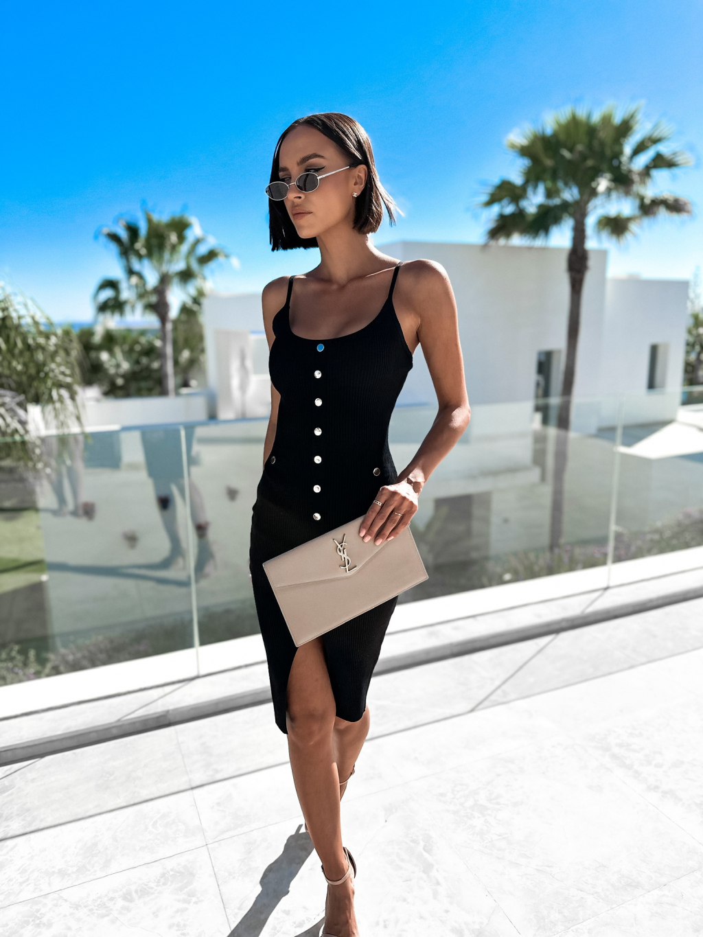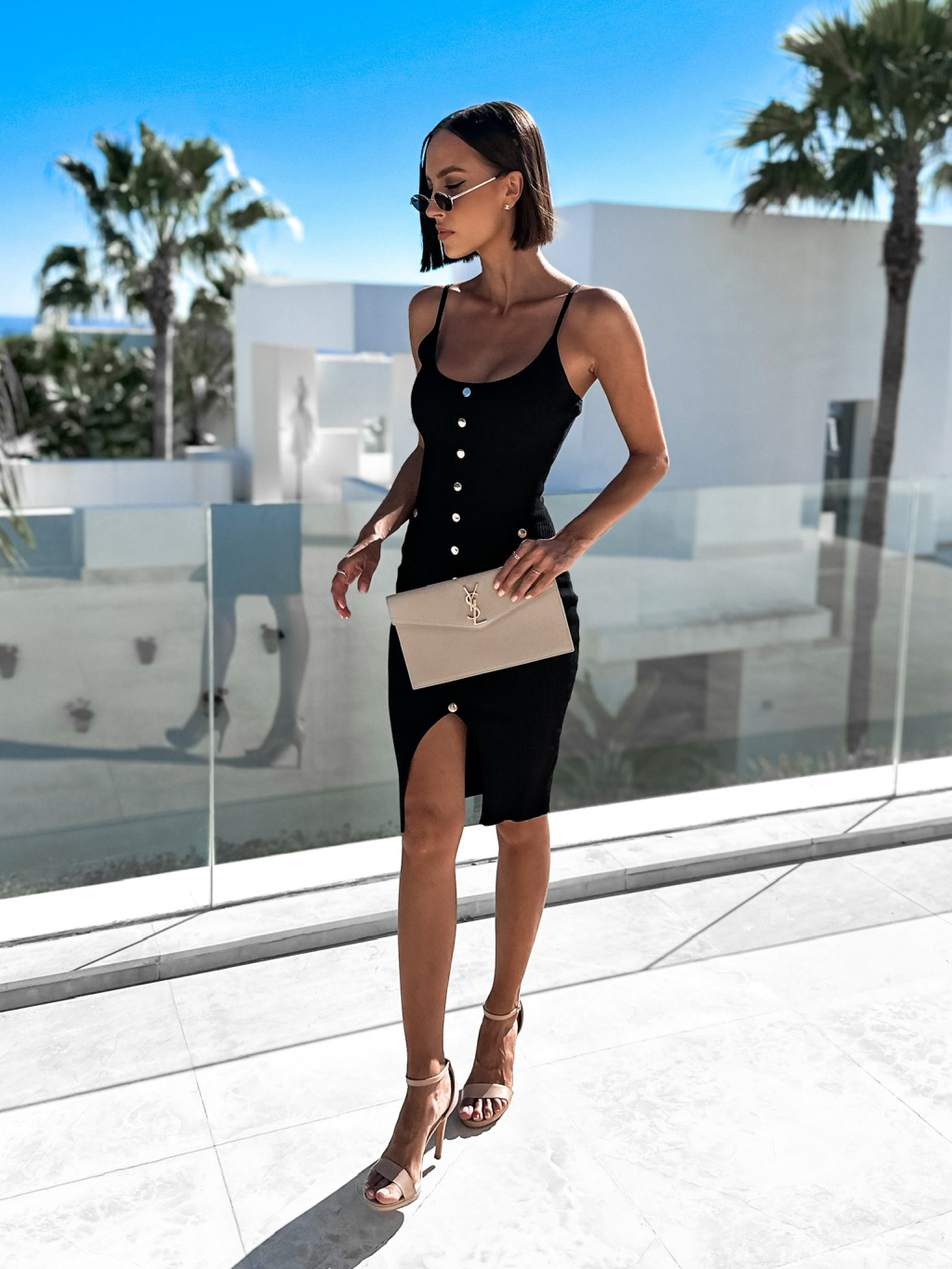 Černé žebrované šaty GREYLLY se zlatými knoflíky