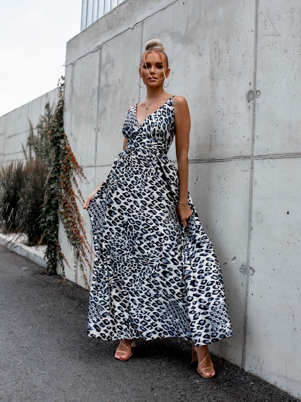 Černobílé dlouhé šaty CHEETAH s leopardím vzorem