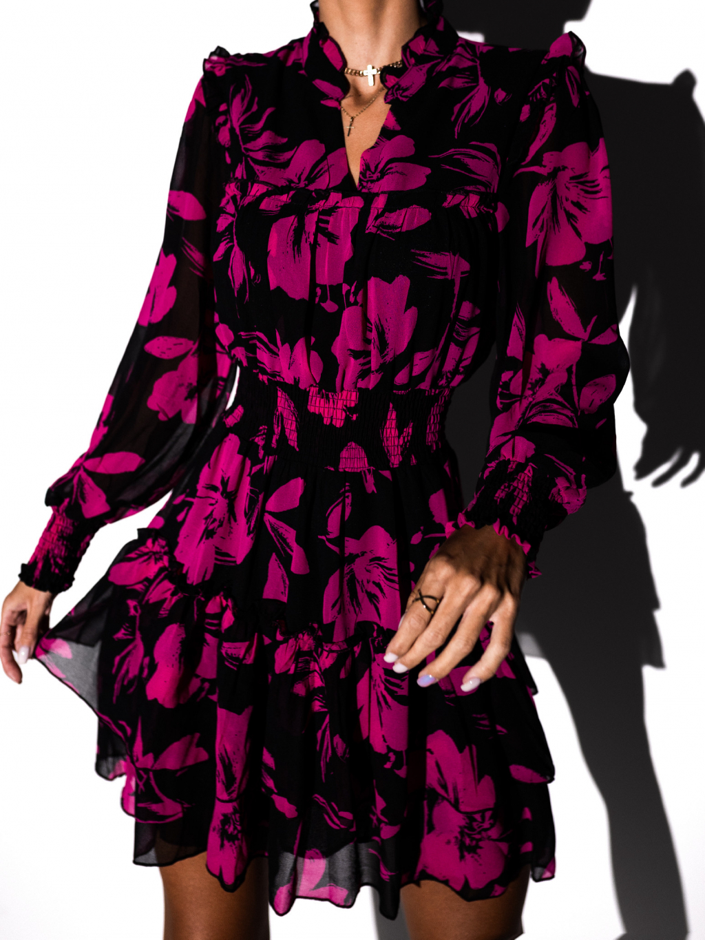 Černorůžové elegantní šaty MIRZA s květinovým vzorem