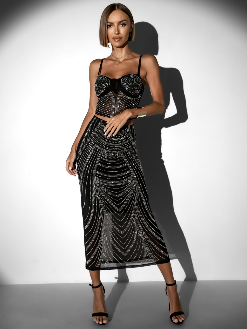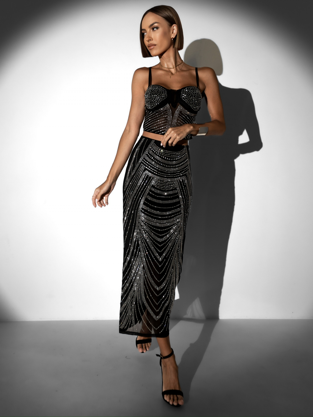 Černostříbrný dvojdílný komplet RIO s flitry