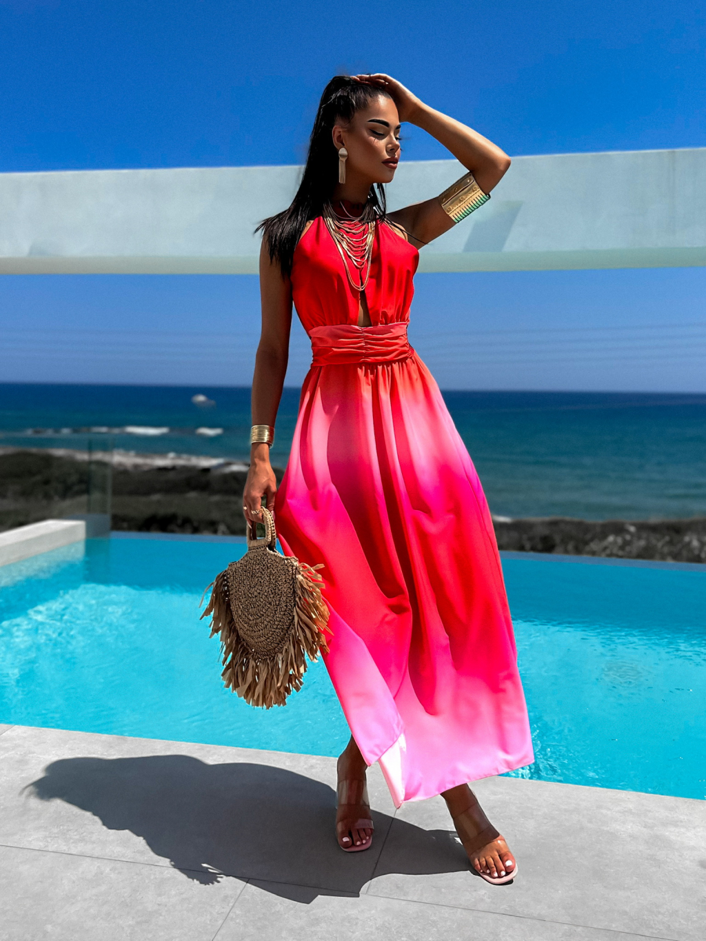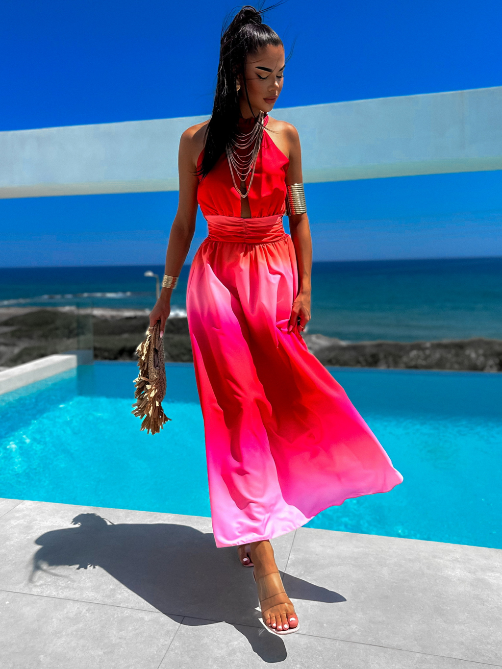 Červené dlouhé elegantní šaty ANYAS