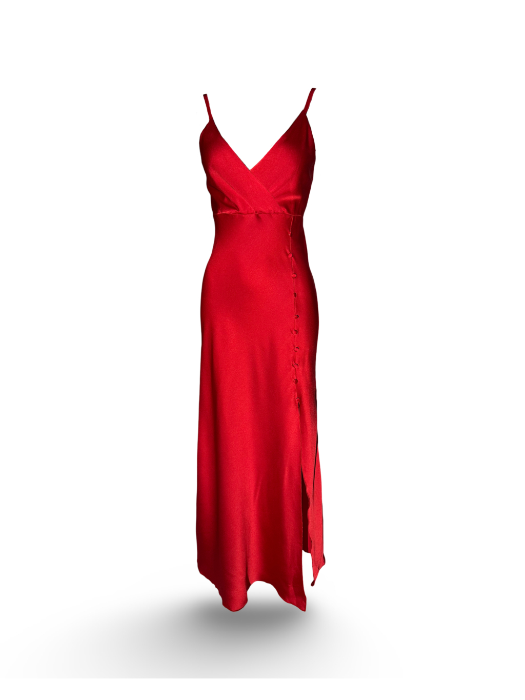 Červené dlouhé lesklé šaty ROSES s rozparkem