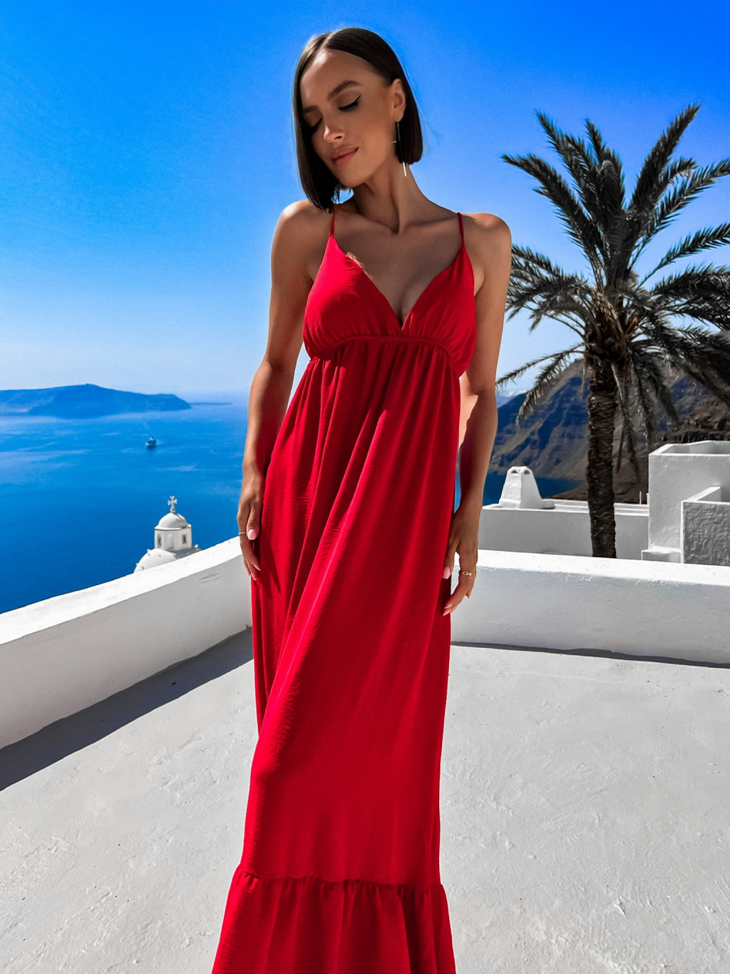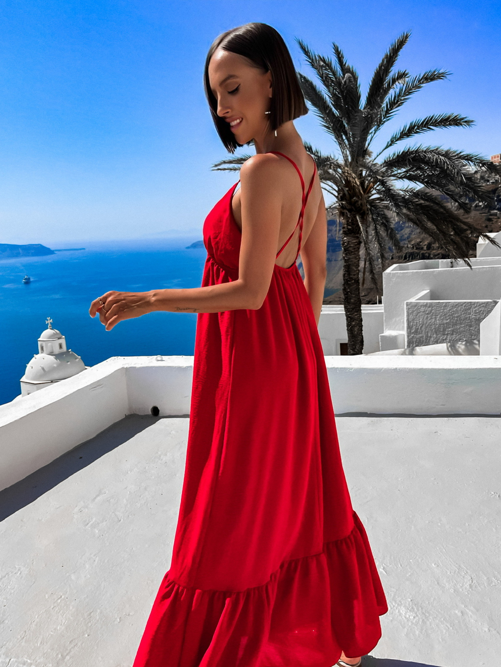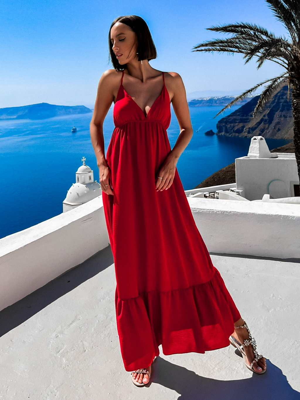 Červené dlouhé šaty LEAFI s volánem