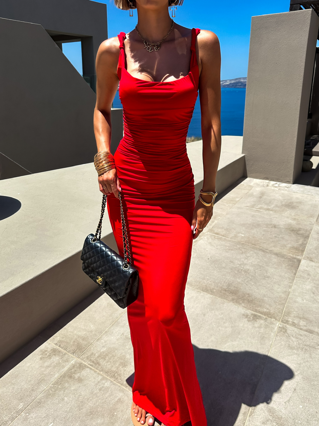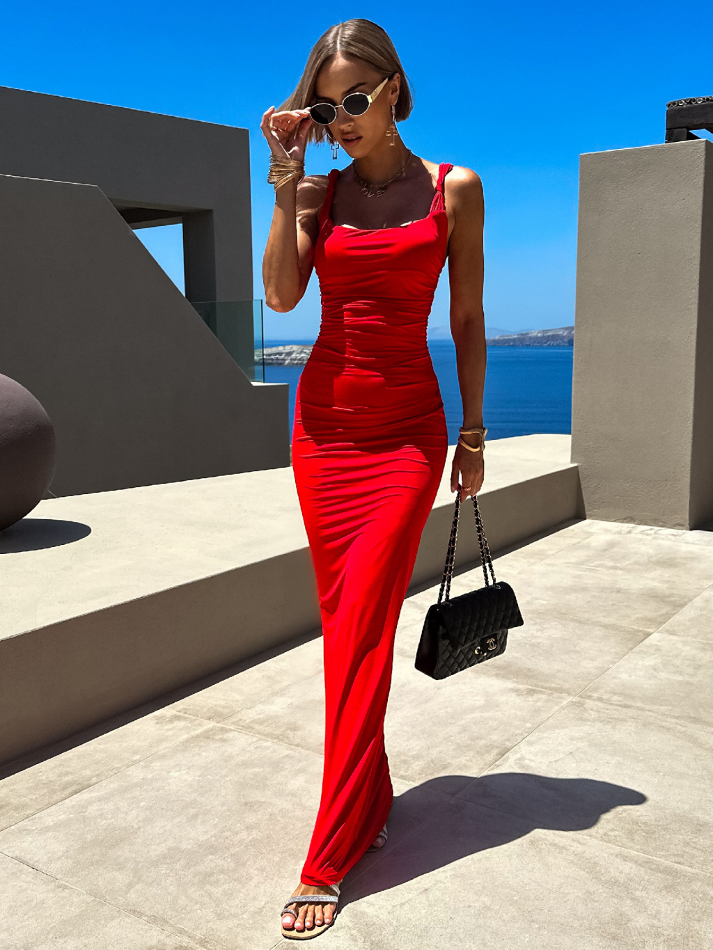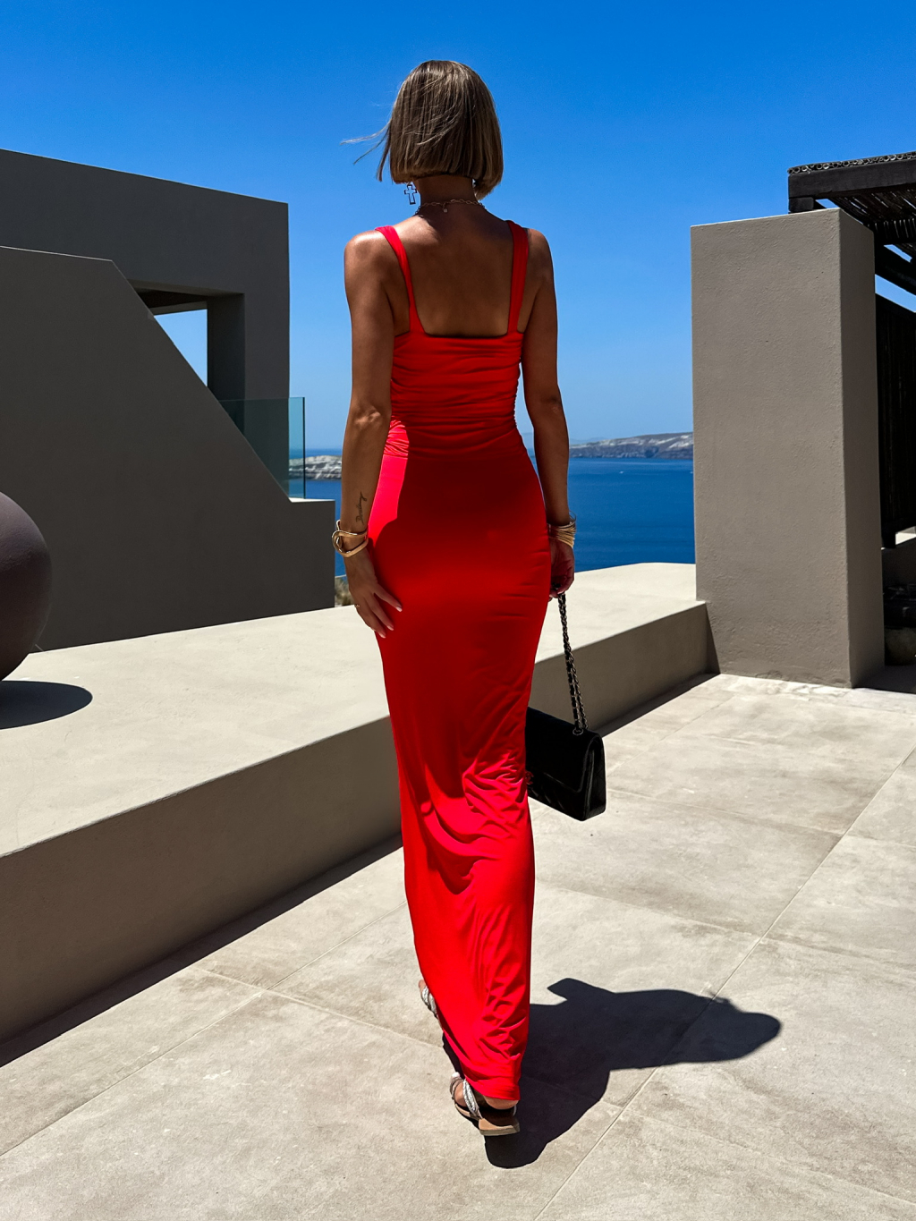 Červené dlouhé tvarující elegantní šaty COMNORY
