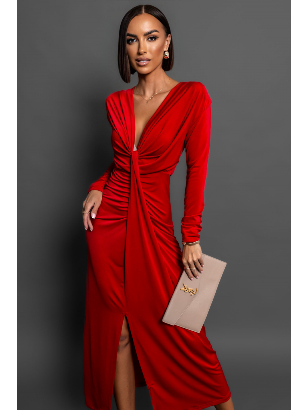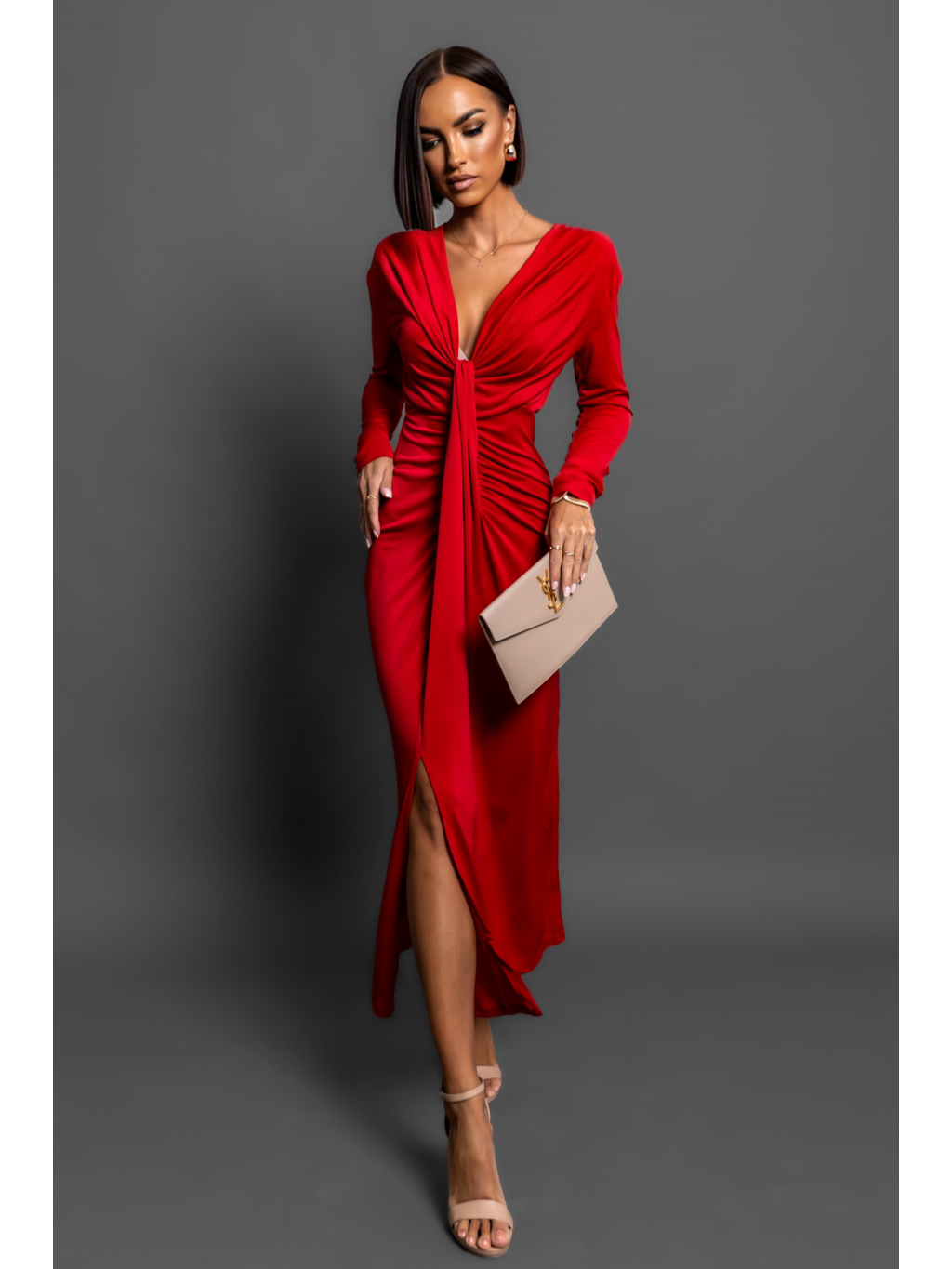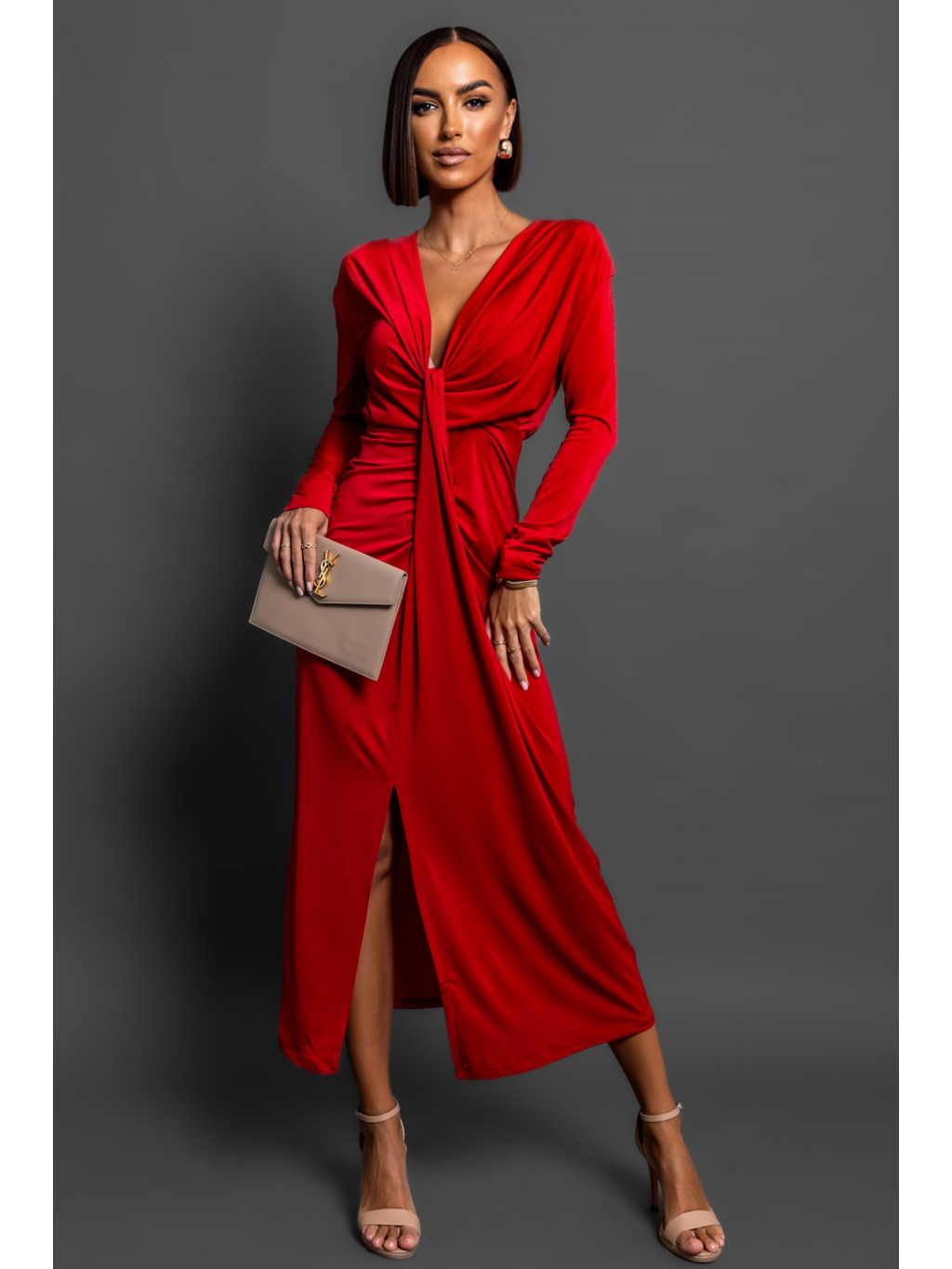 Červené elegantní šaty BOREAS s výstřihem