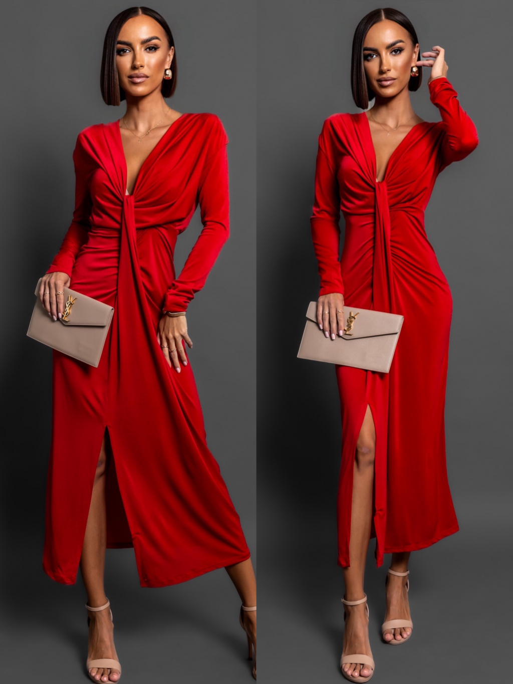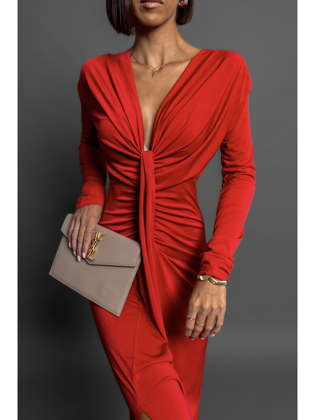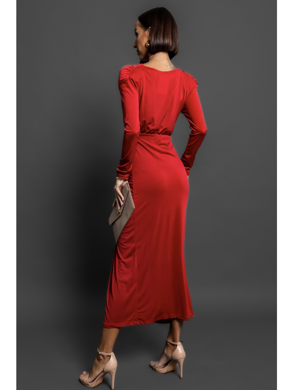 Červené elegantní šaty BOREAS s výstřihem