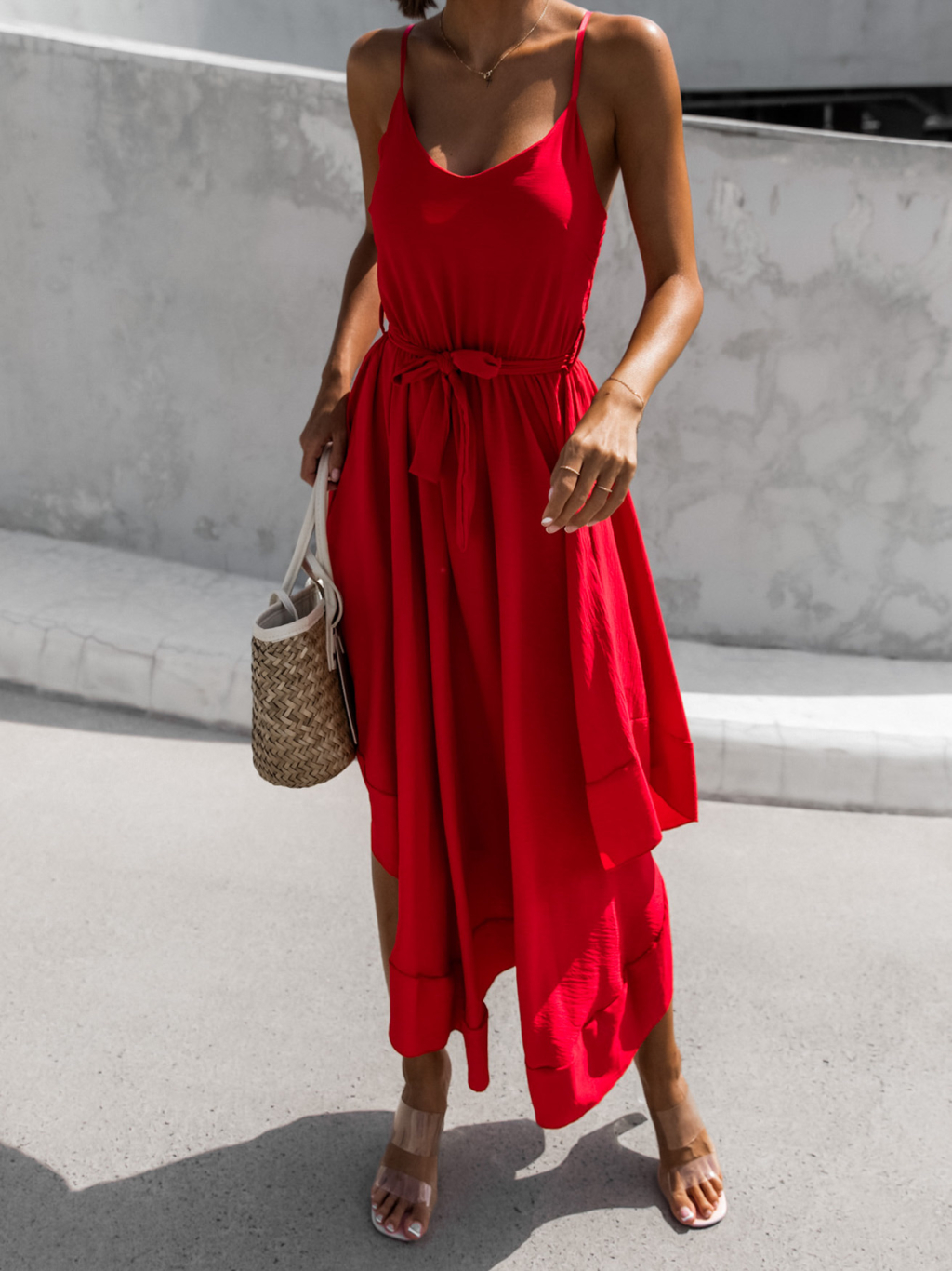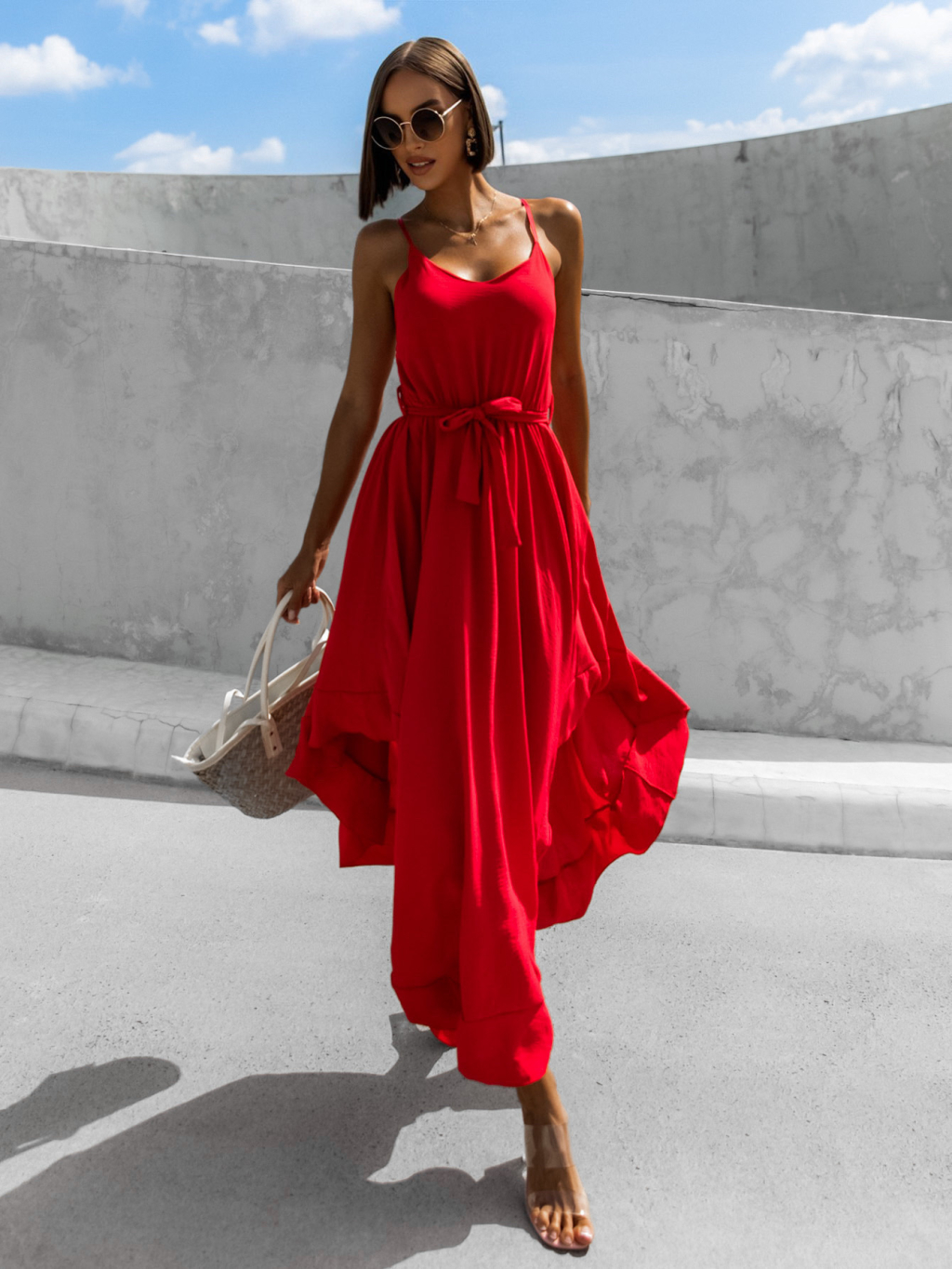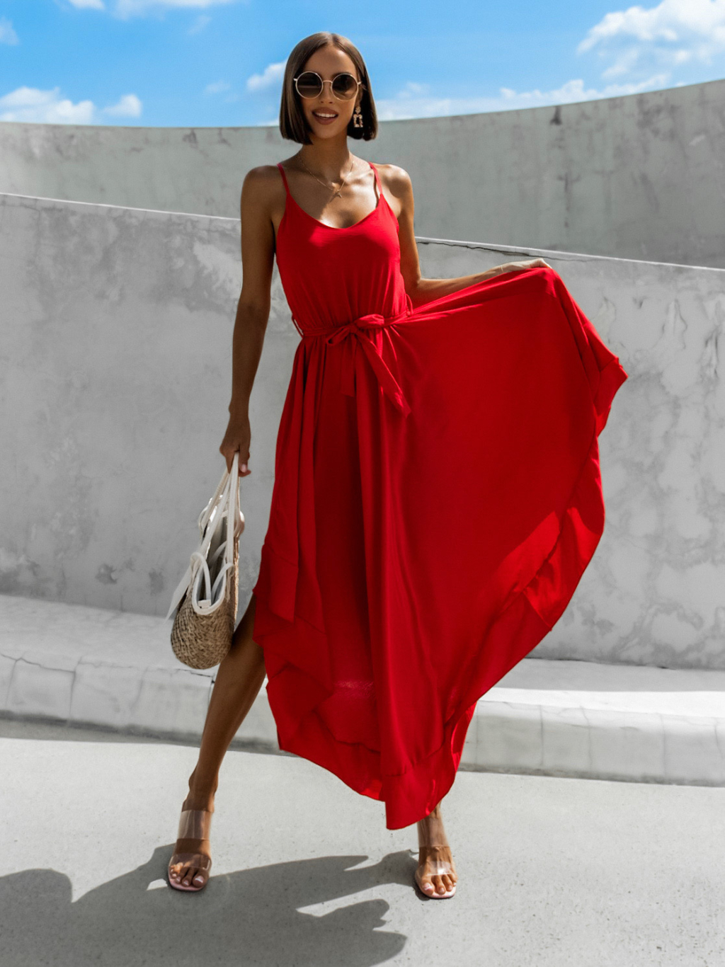 Červené elegantní šaty FLORIE asymetrického stylu