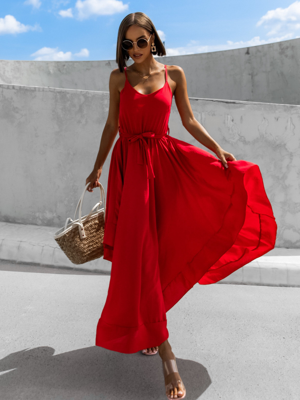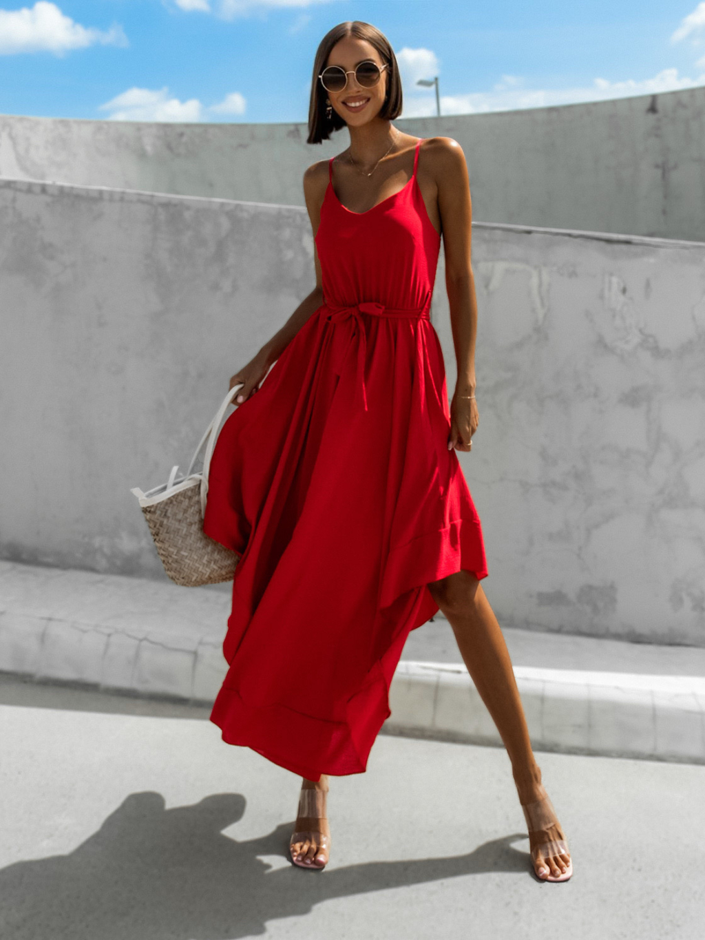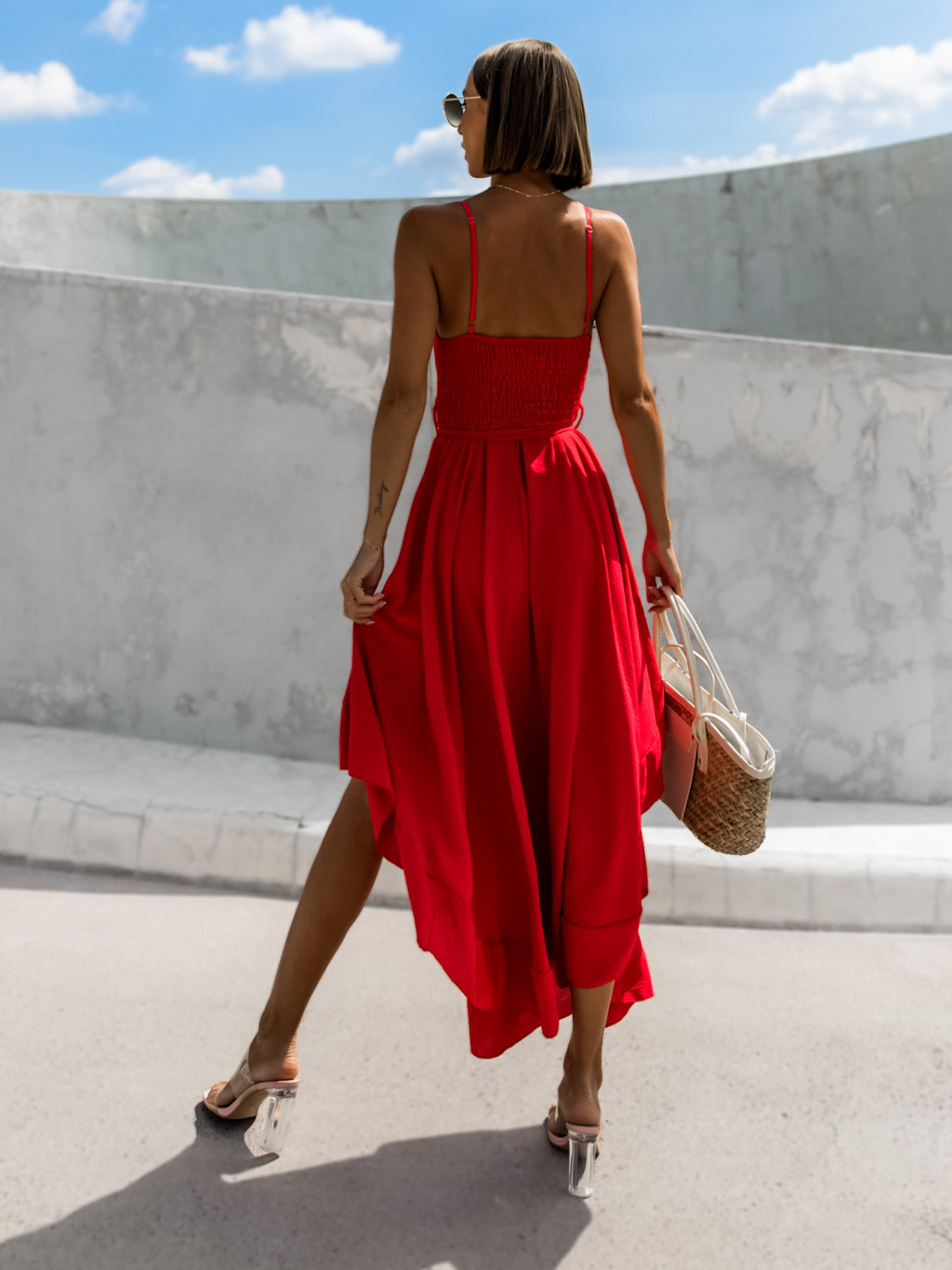 Červené elegantní šaty FLORIE asymetrického stylu