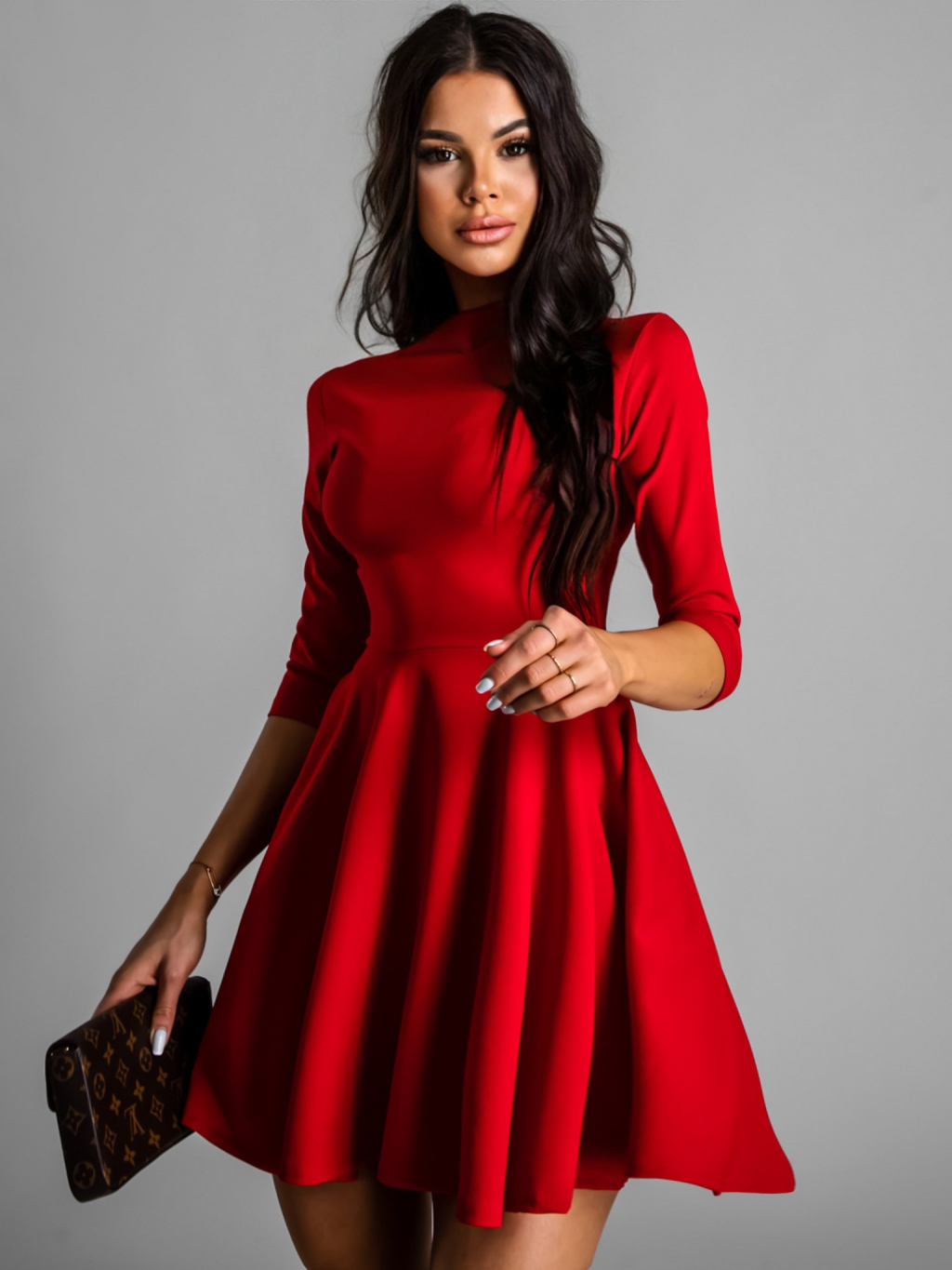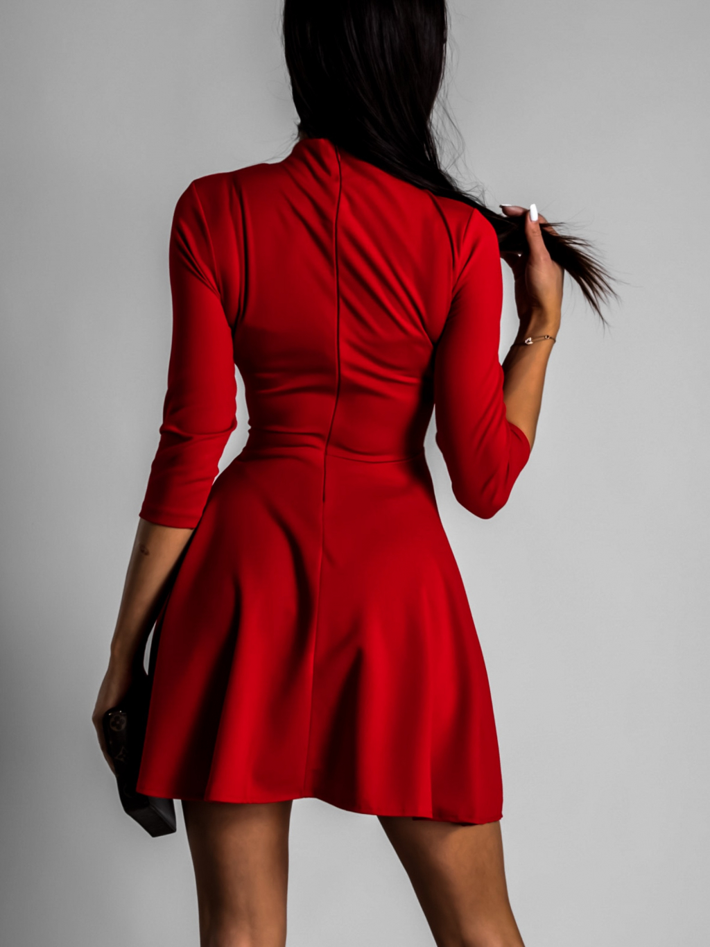 Červené elegantní šaty GROUND s dlouhým rukávem