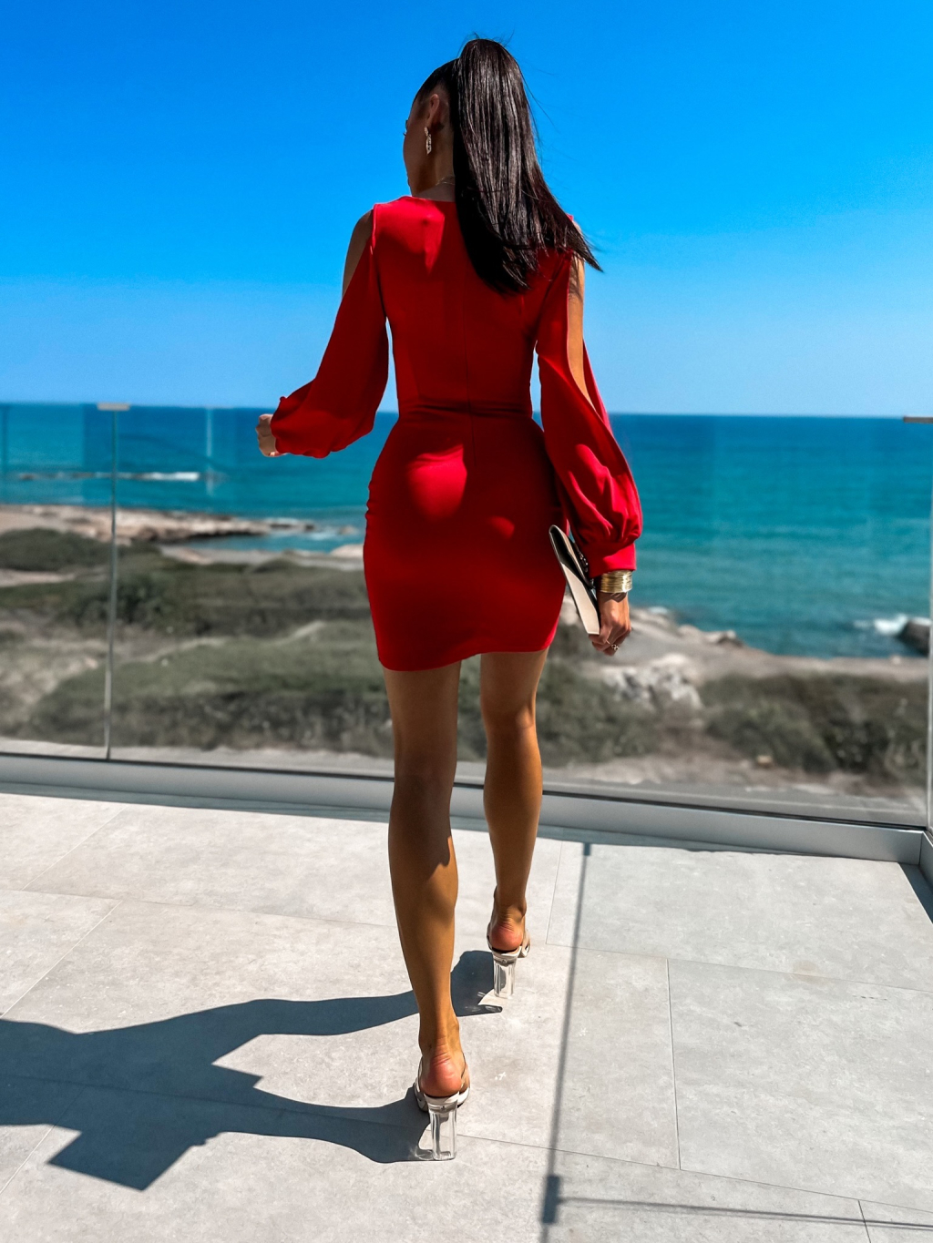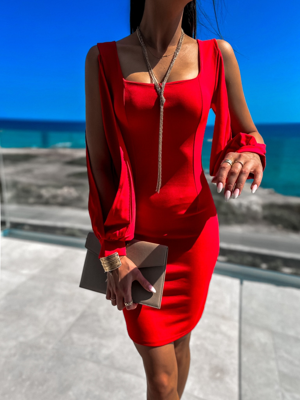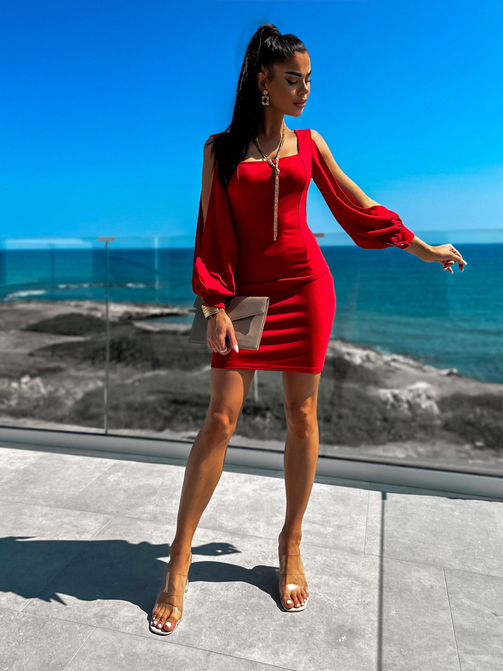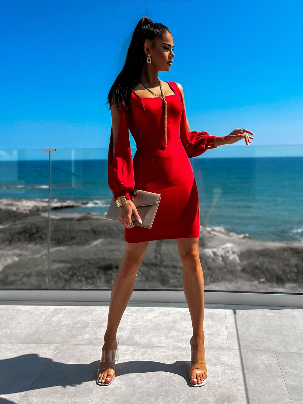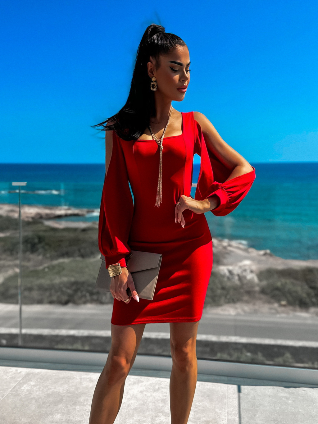 Červené elegantní šaty RENDAE s průstřihy na rukávu