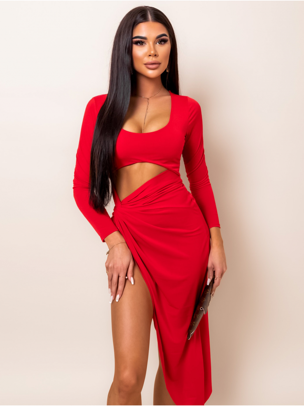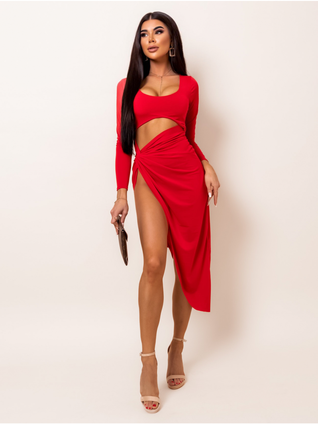 Červené elegantní šaty VALLI s průstřihy