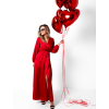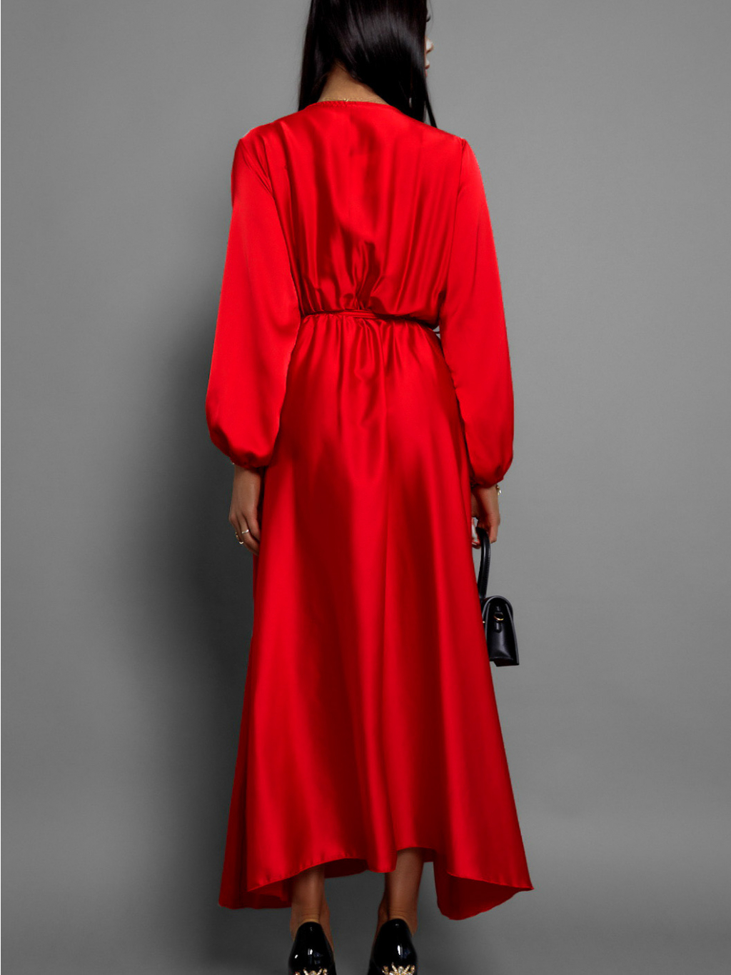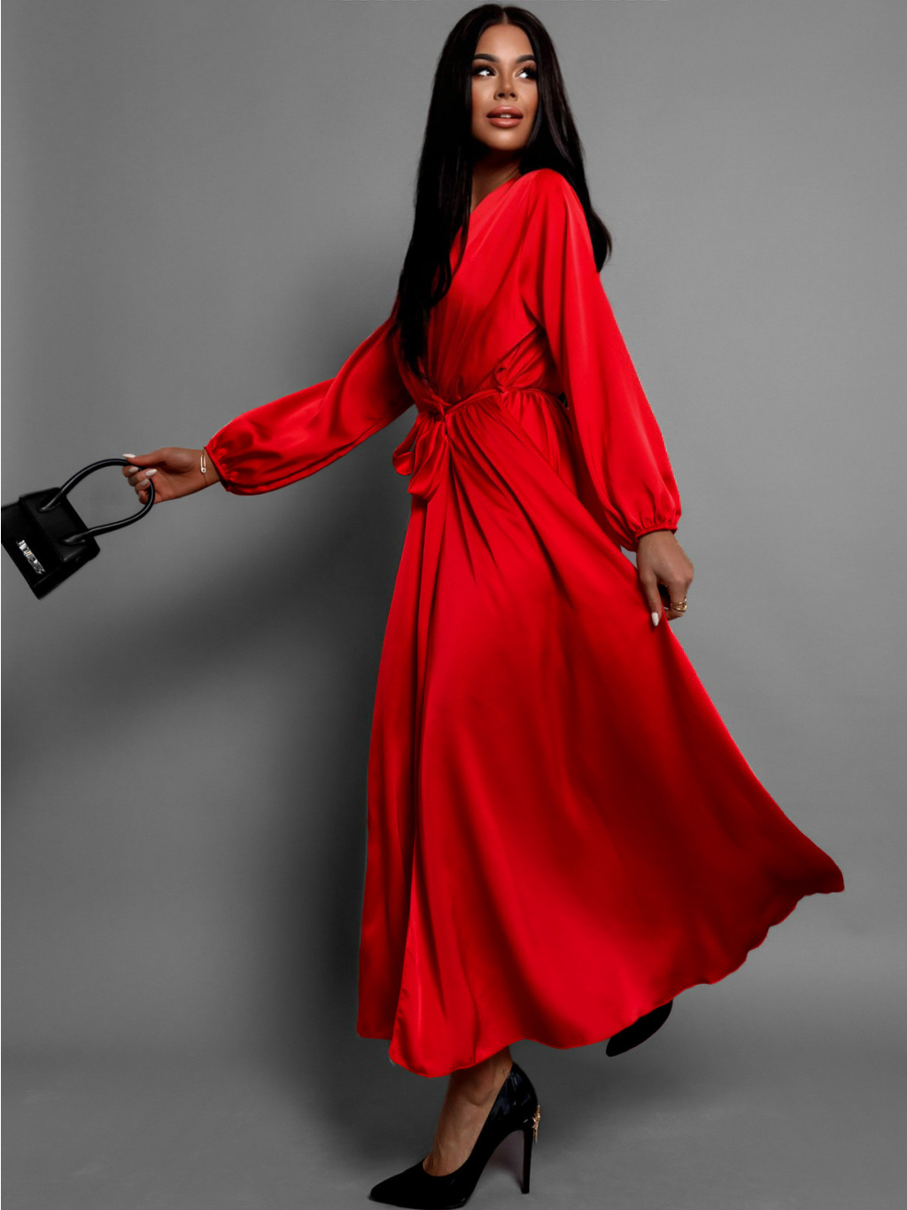 Elegantní saténové maxi šaty, které okouzlí svou lehkostí a ženskostí. Hladký lesklý materiál jemně splývá po postavě a vytváří luxusní efekt při každém kroku. Zavazování v pase krásně zvýrazní siluetu a dodá modelu sofistikovaný nádech. Výrazný rozparek na sukni působí svůdně a zároveň zajišťuje maximální pohodlí a volnost pohybu. Perfektní volba pro společenské události, večírky či slavnostní příležitosti.