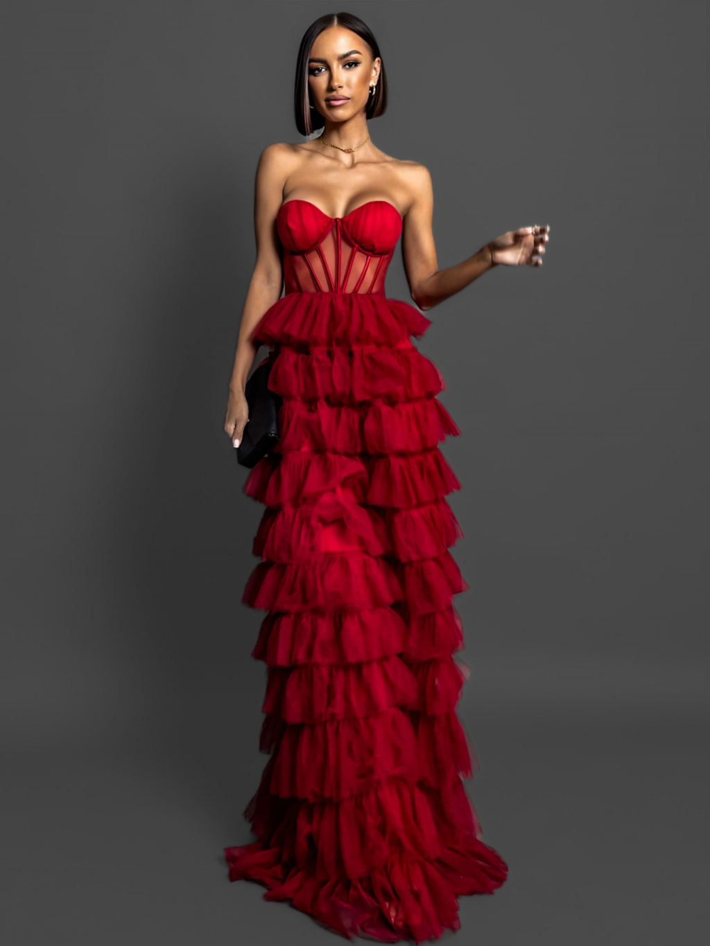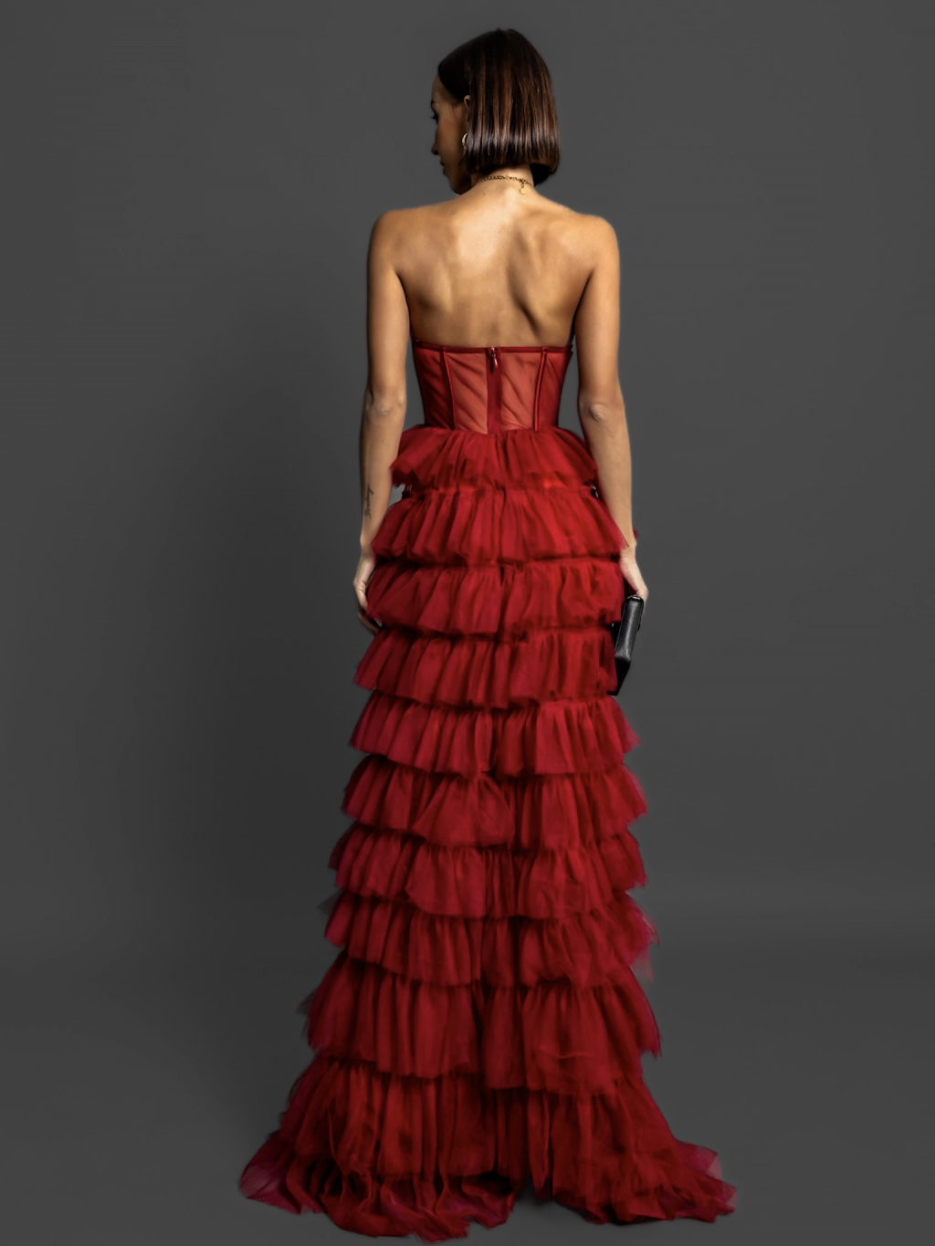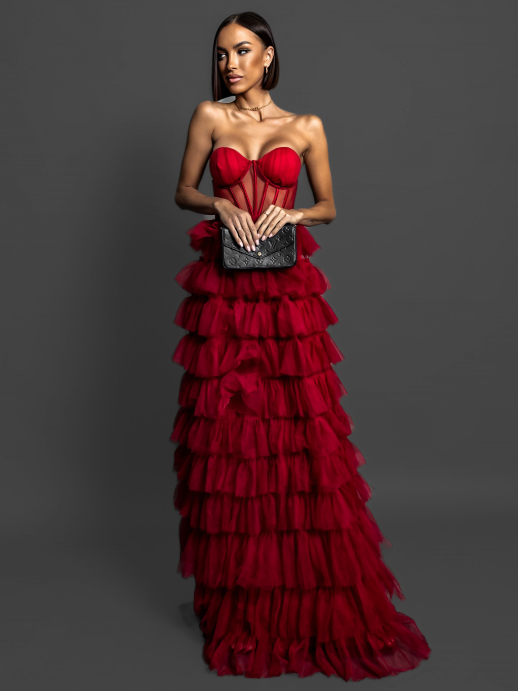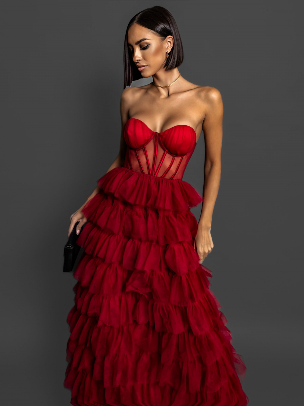 Červené korzetové šaty ARIADNA s volánky