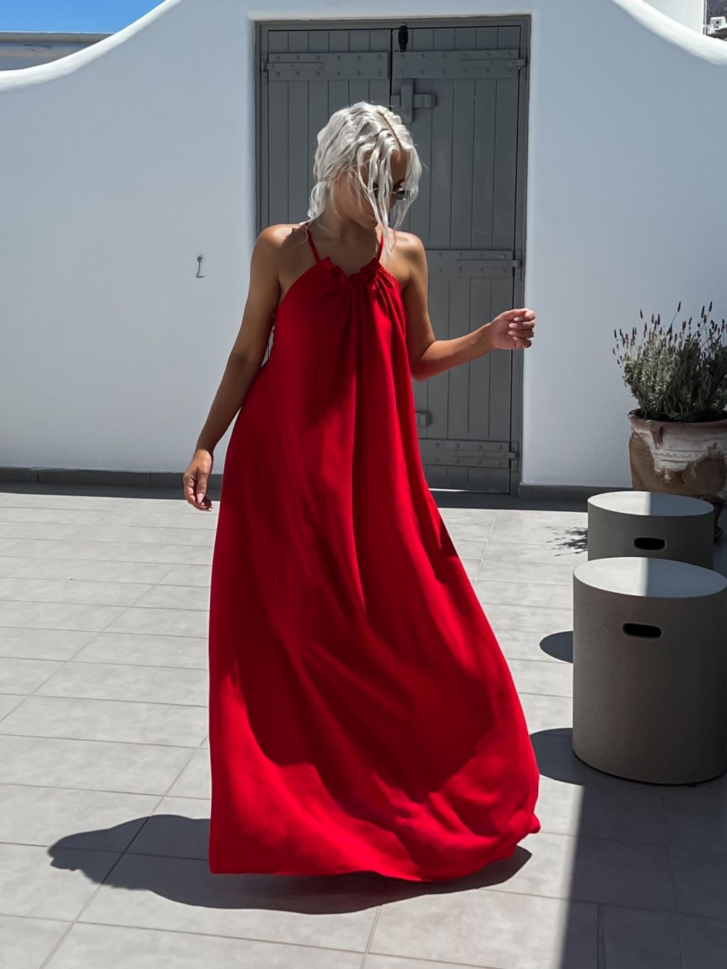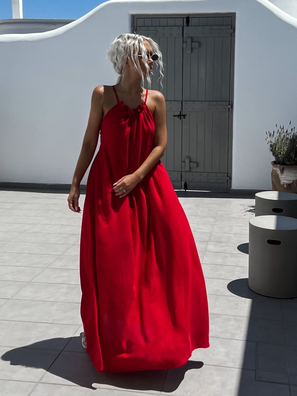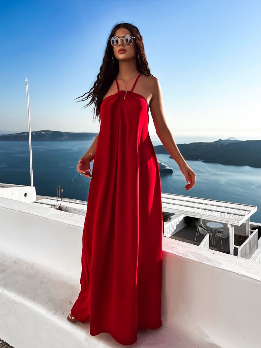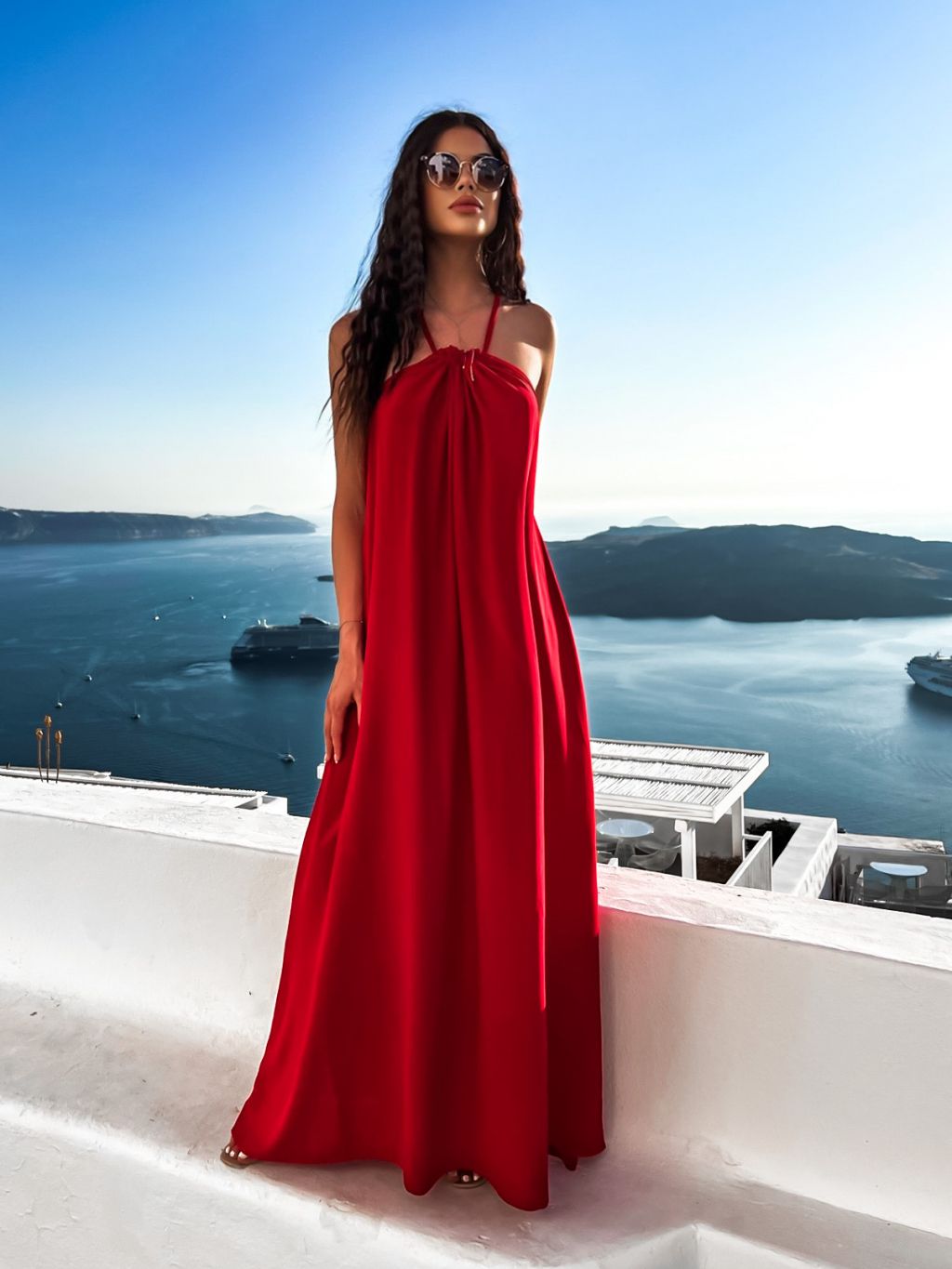 Červené maxi šaty SOALLY s holými zády