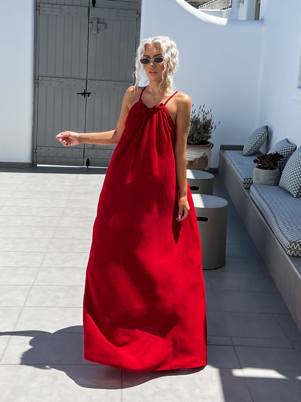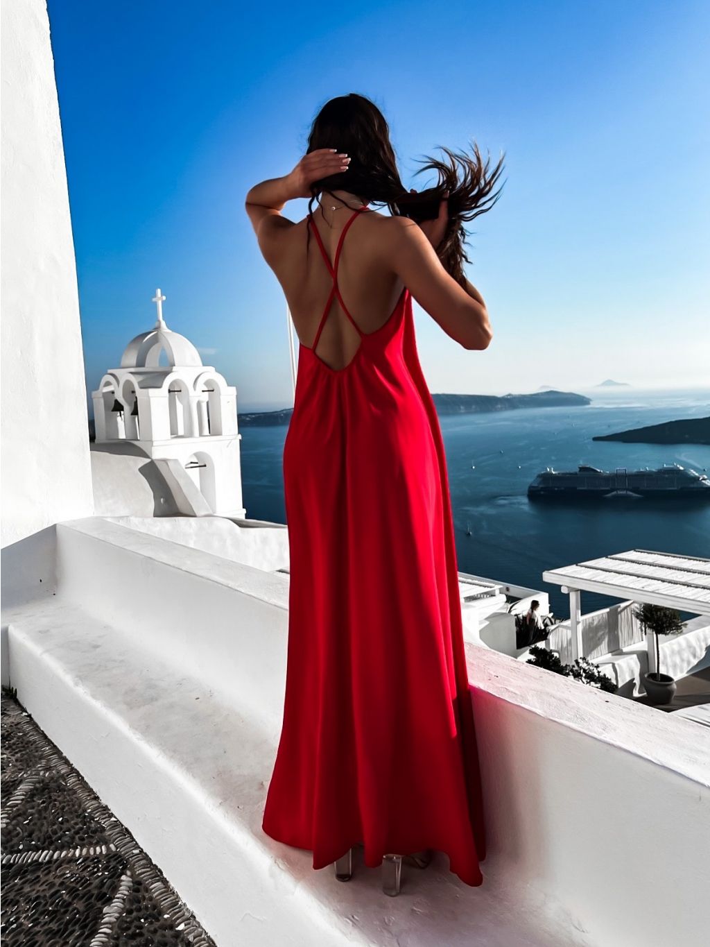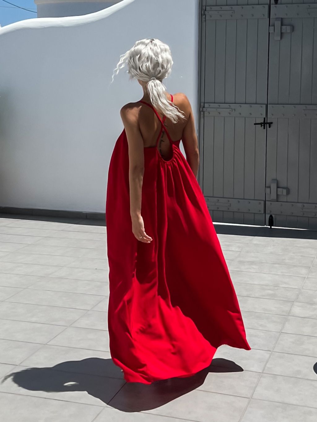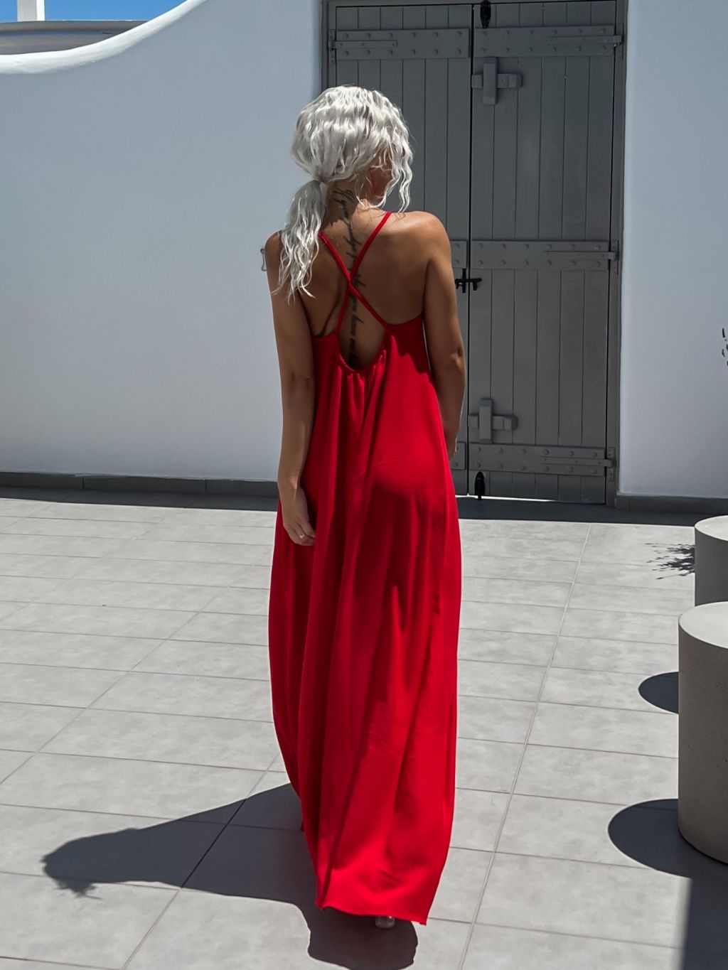 Červené maxi šaty SOALLY s holými zády