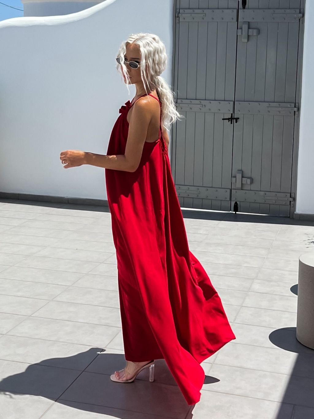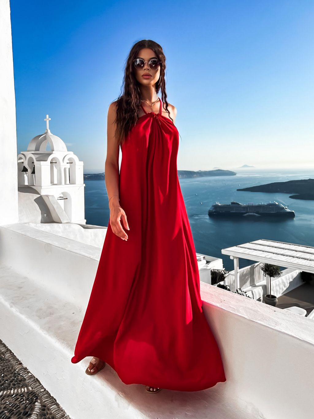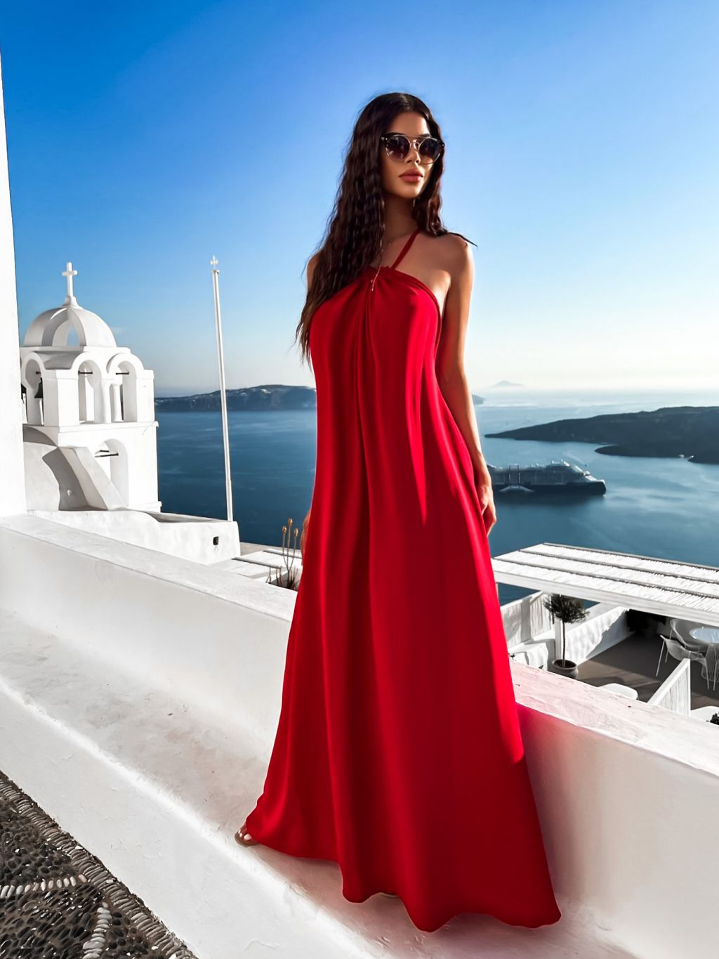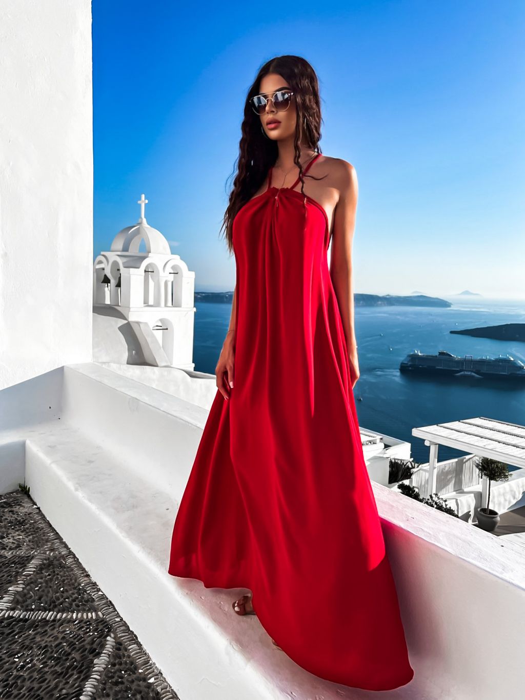 Červené maxi šaty SOALLY s holými zády