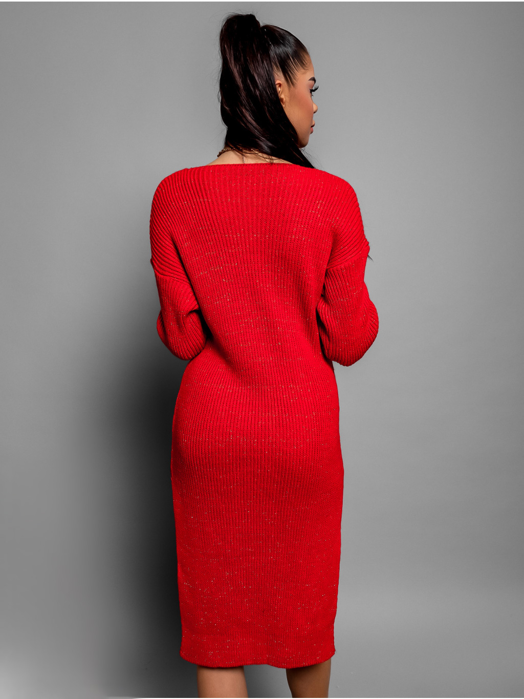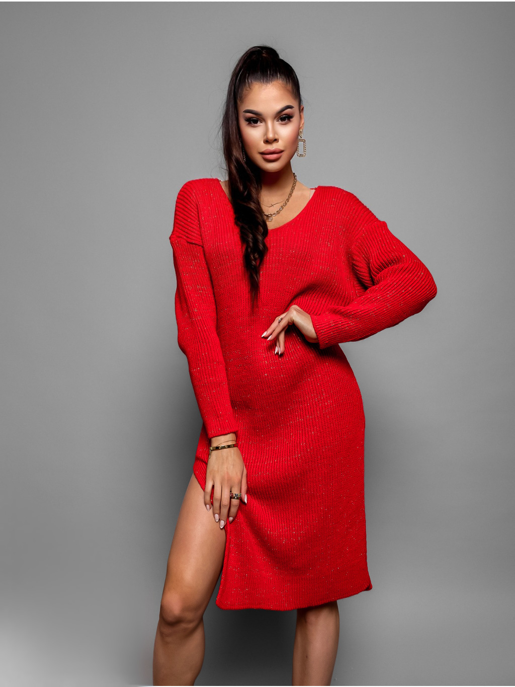 Červené pletené šaty MINGLE s rozparkem