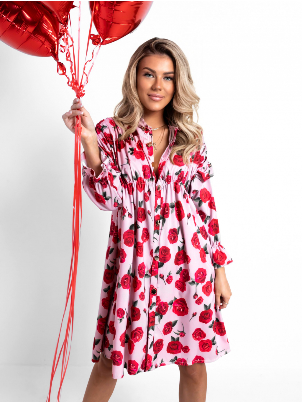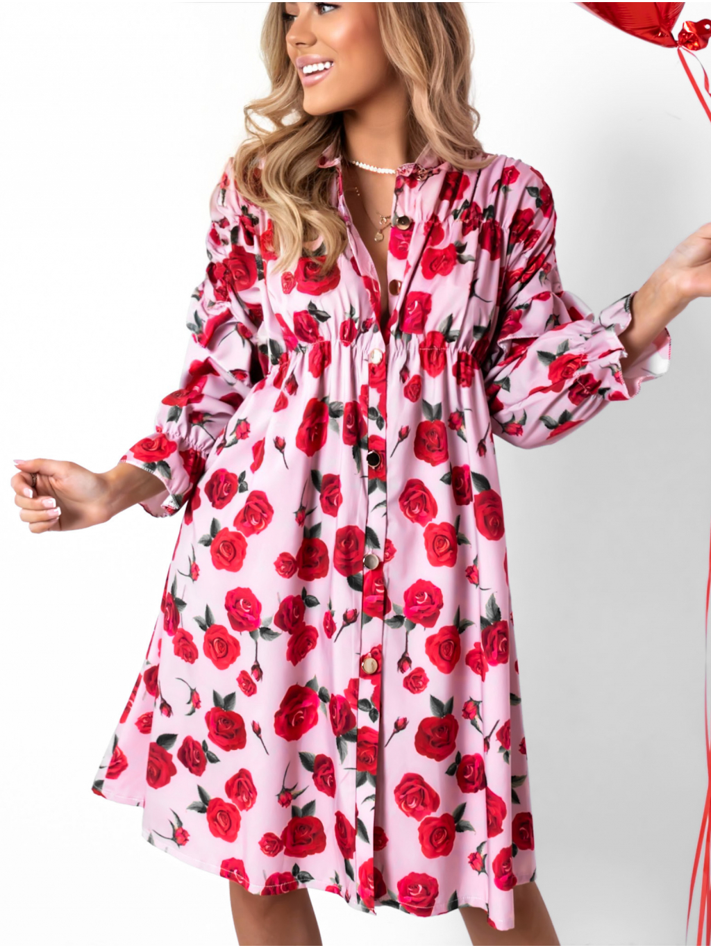 Červené šaty JOSHUAE s květinovým vzorem