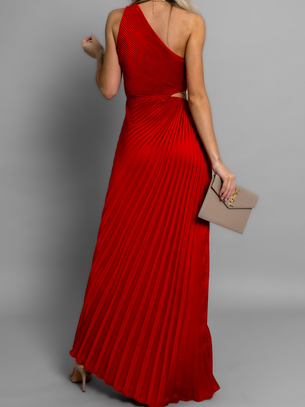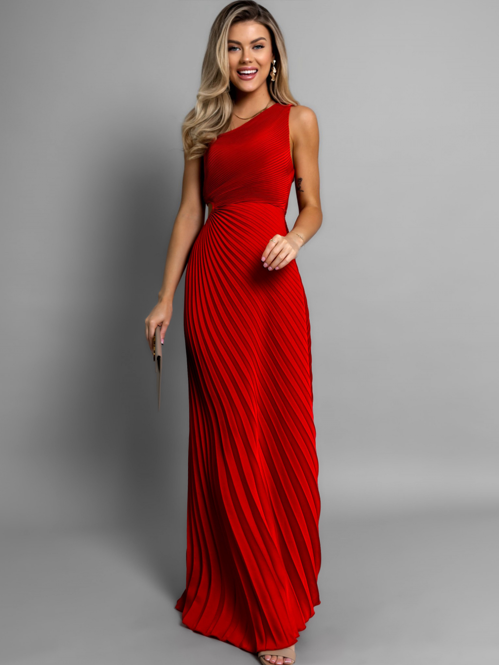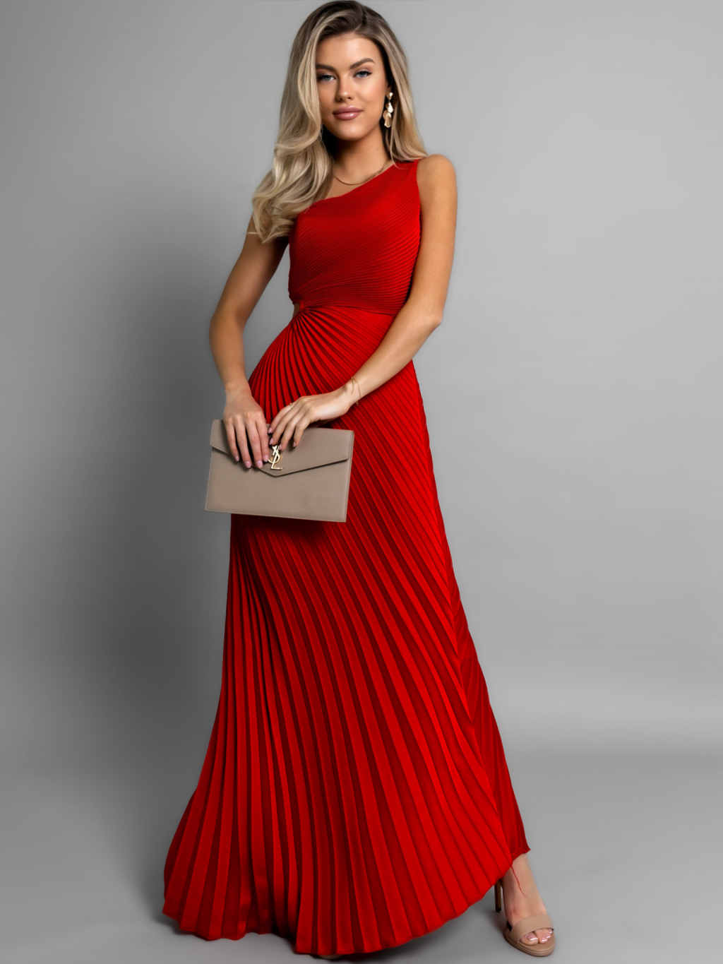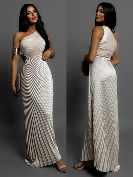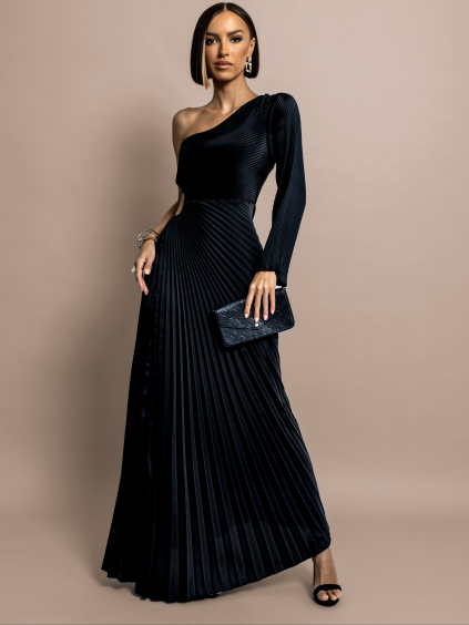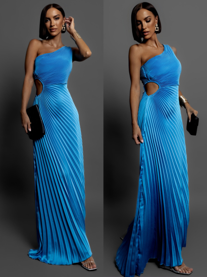 Šaty Suntils jsou dlouhé plisované šaty s lesklým povrchem, navržené pro pohodlné nošení. Elegantní střih na jedno rameno a půvabný průstřih dodávají šatům sexy vzhled. Ideální volba na ples, svatbu, nebo pro družičky, které chtějí zazářit.