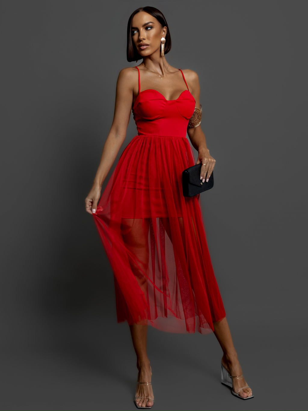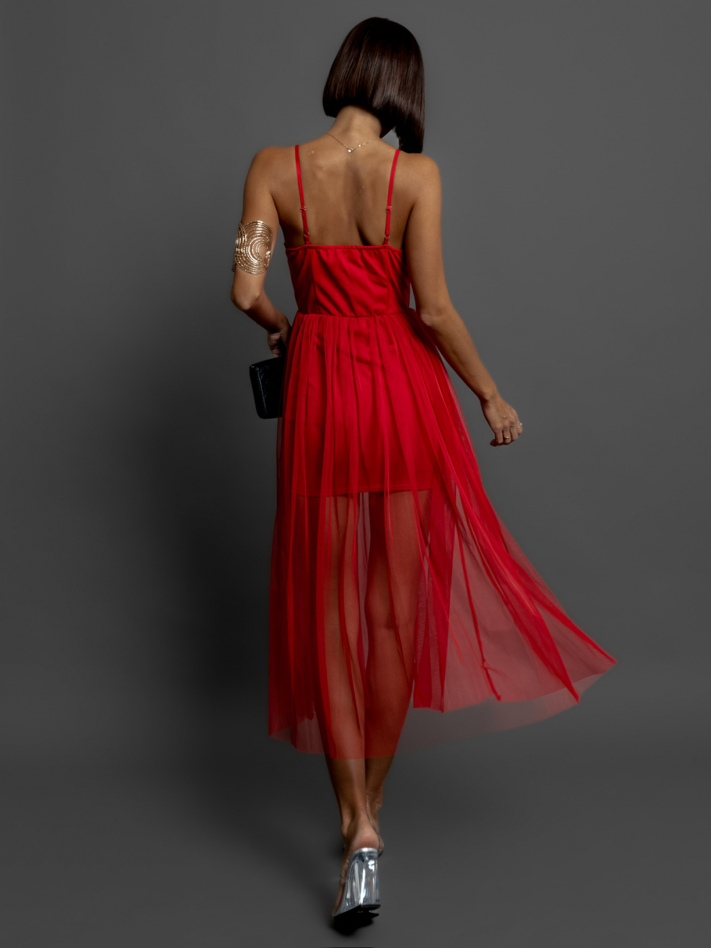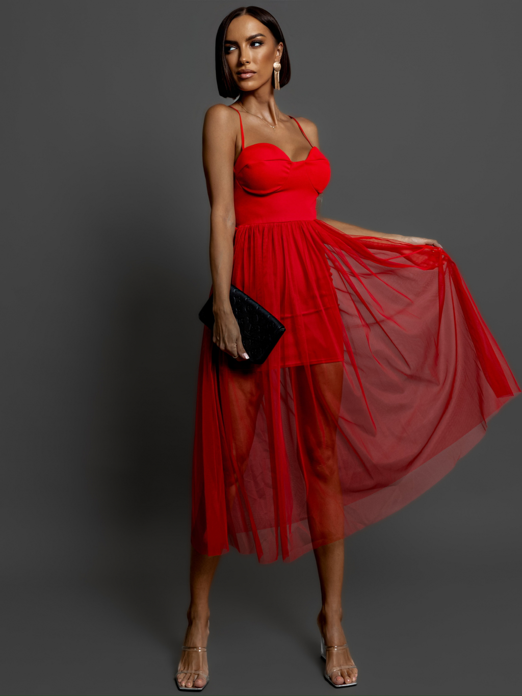 Červené tylové šaty POLOWA