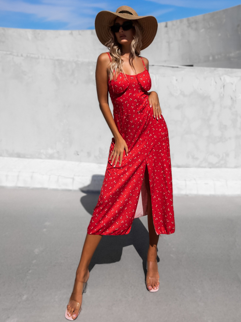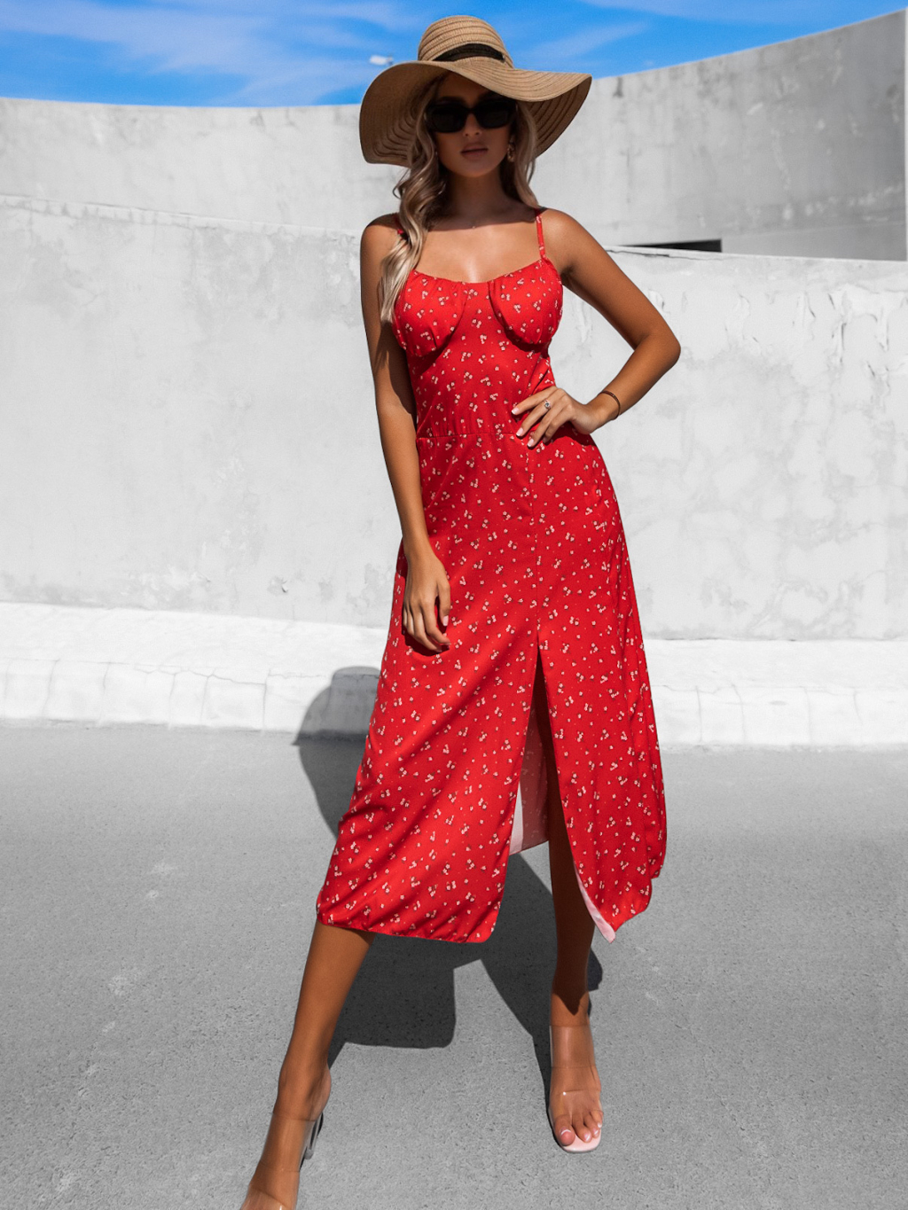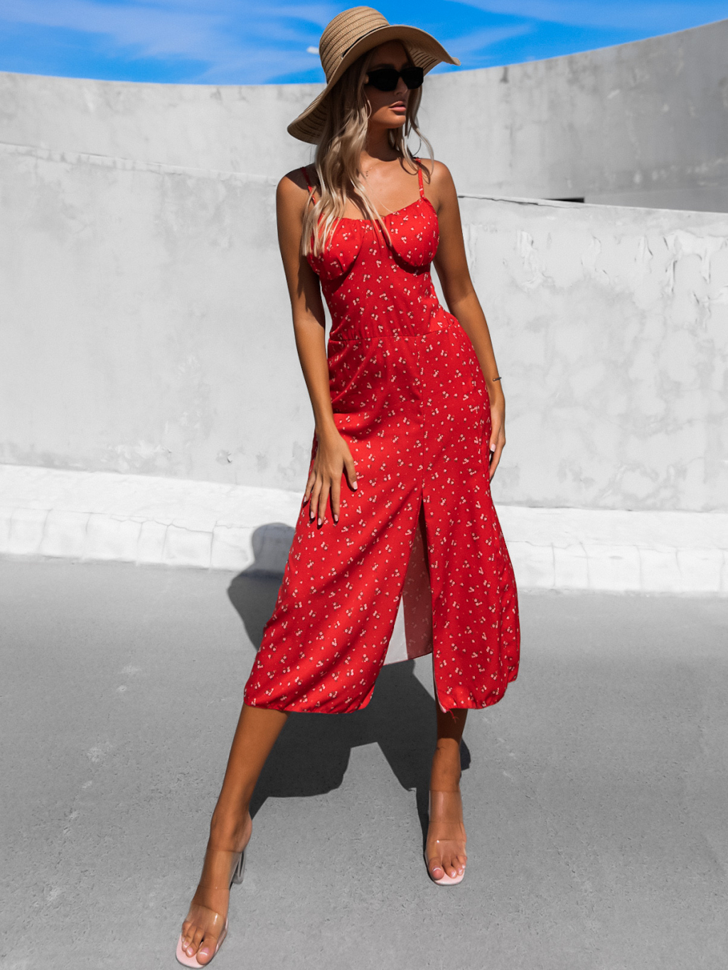 Červené vzorované šaty FALISEN s rozparkem
