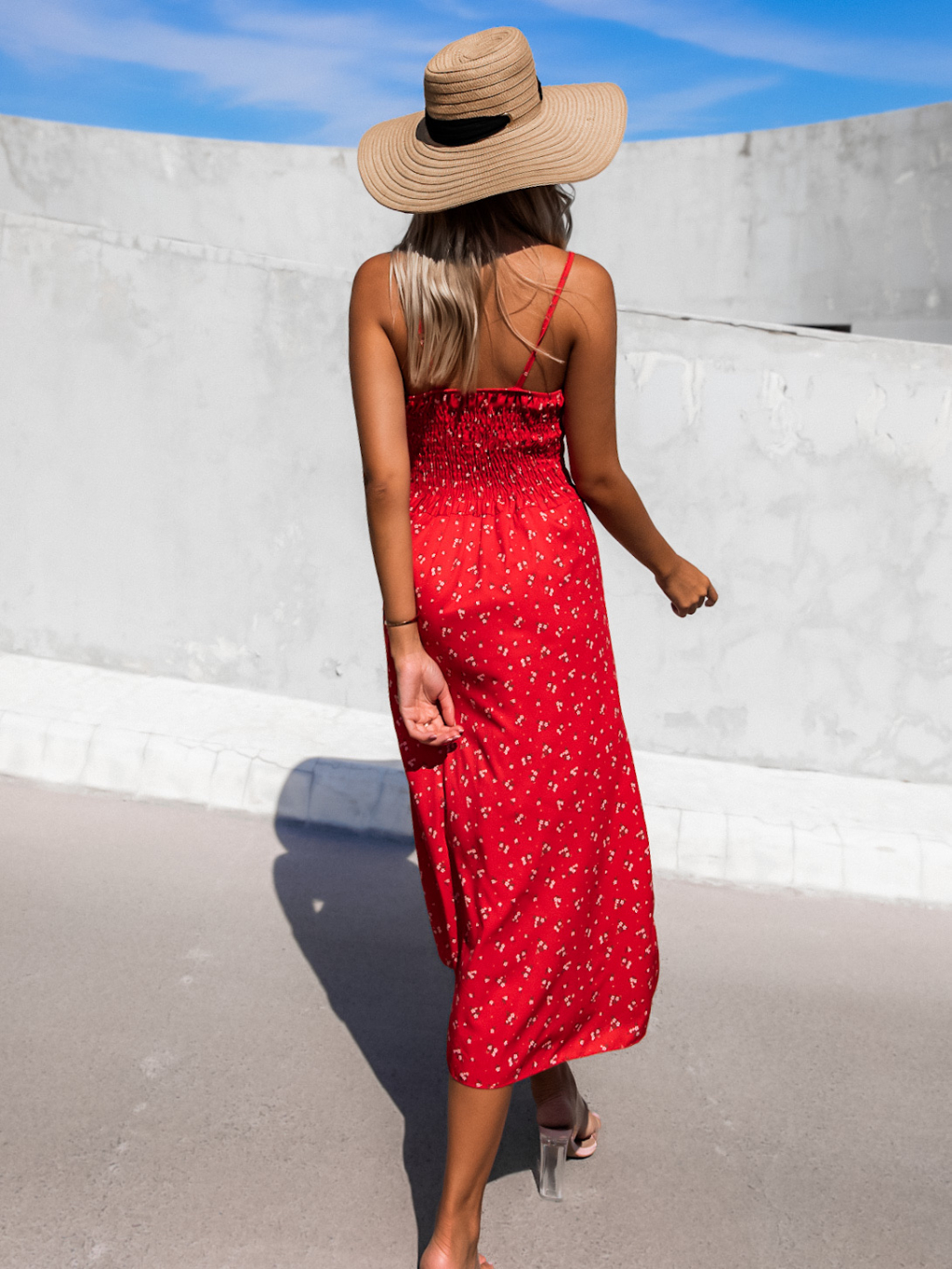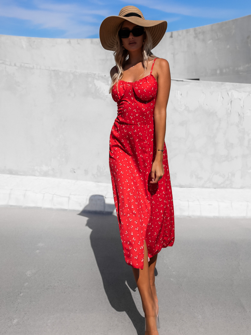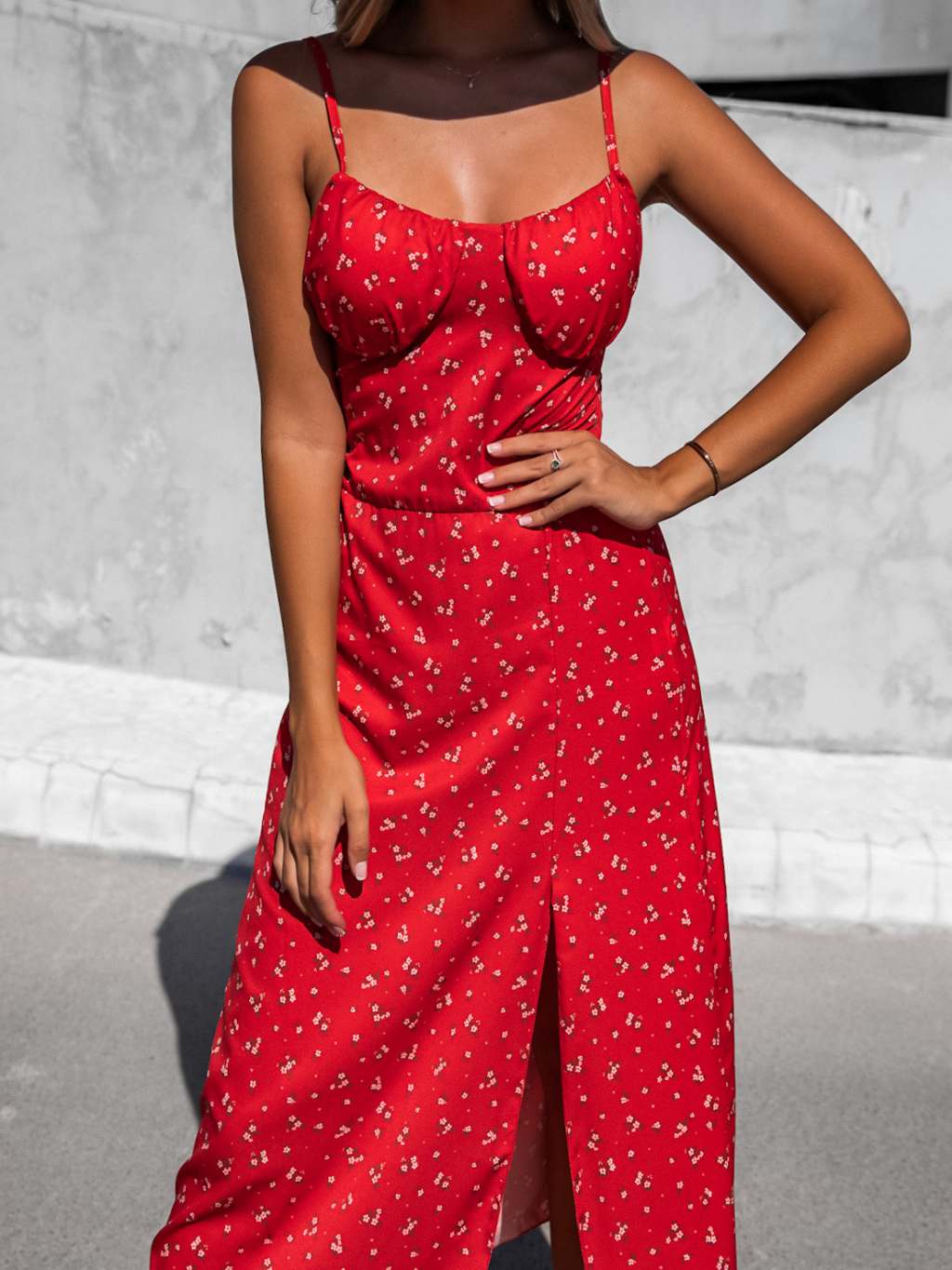 Červené vzorované šaty FALISEN s rozparkem