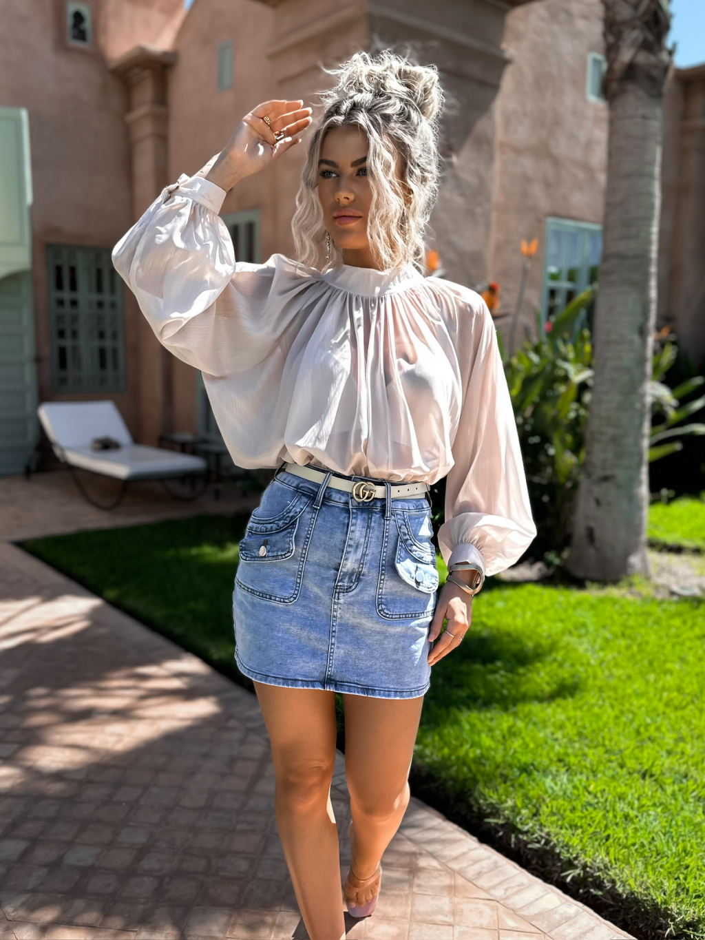 Džínová krátká cargo sukně ZAURE s podšívkou