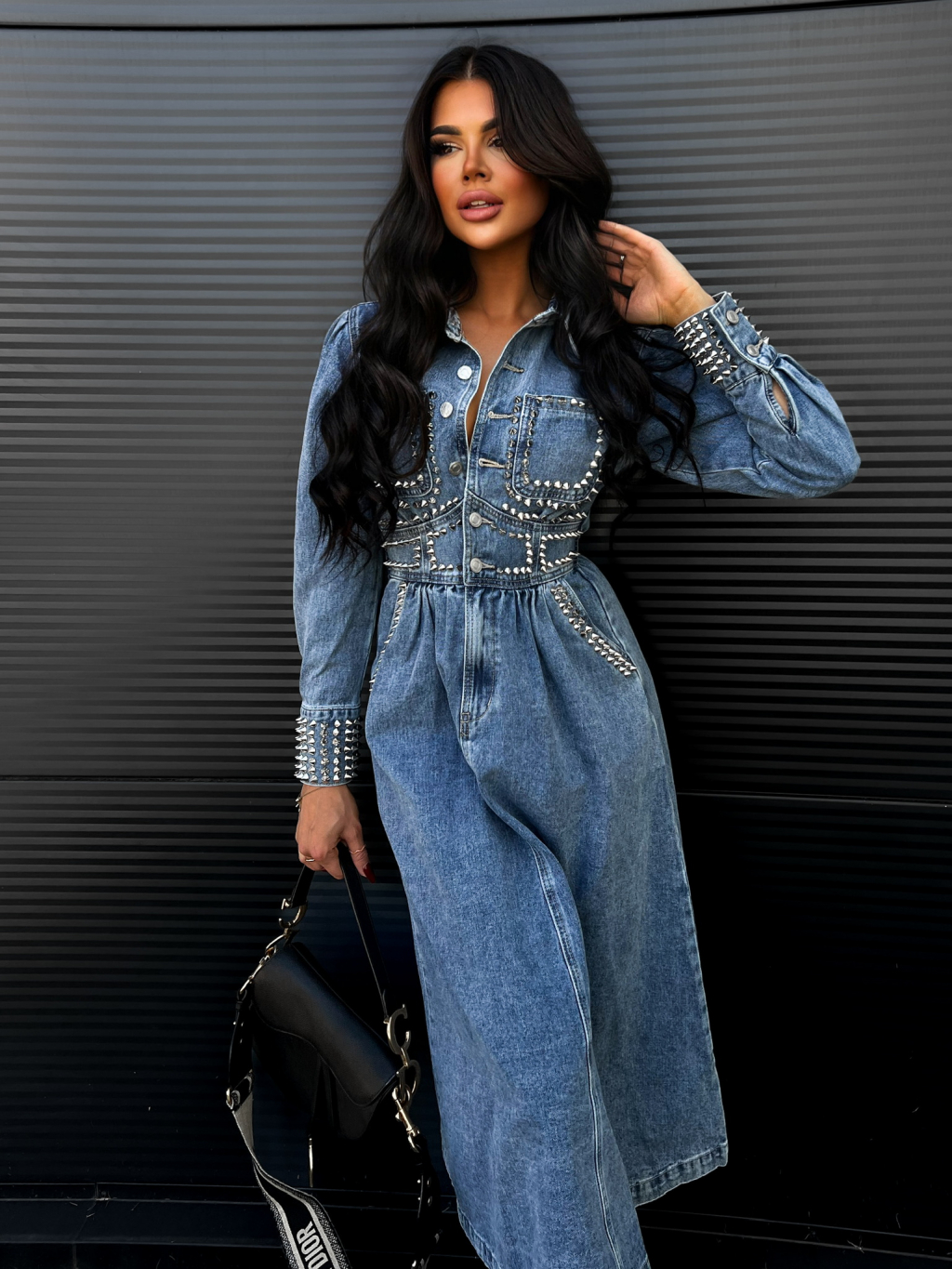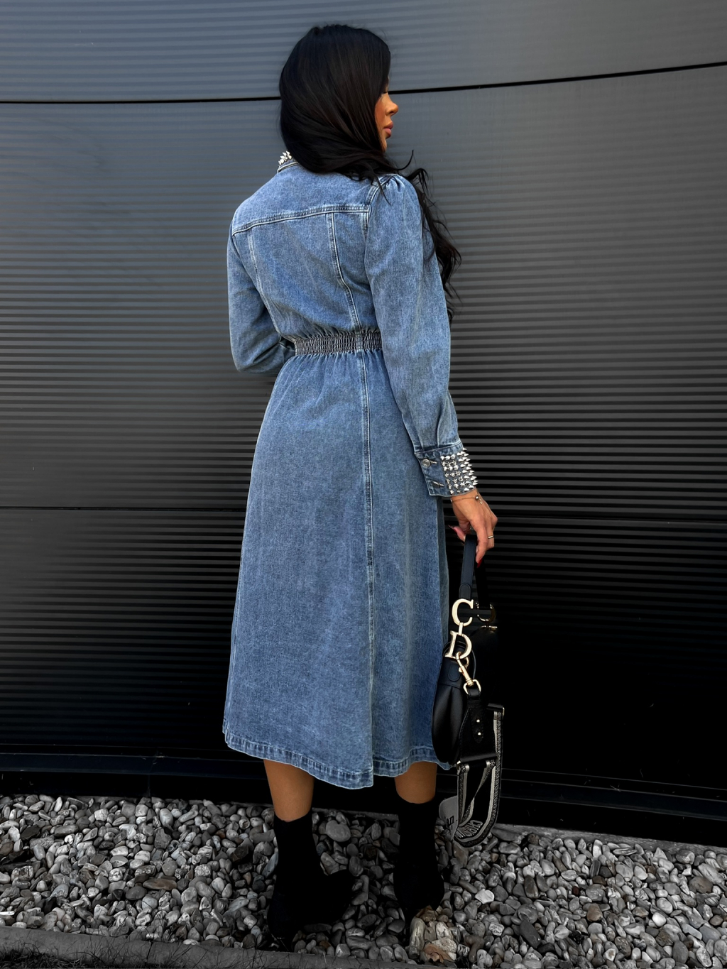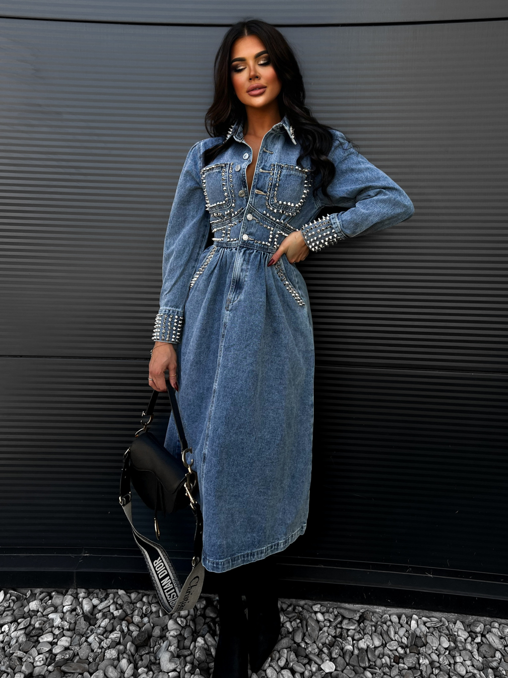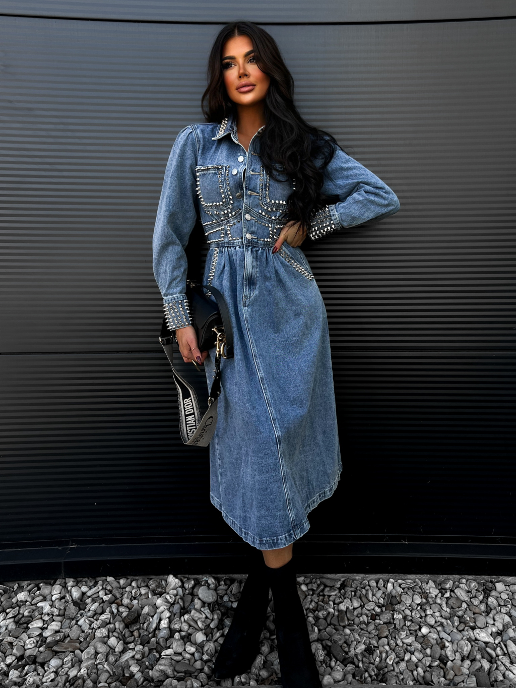 Džínové šaty CONCELIN se stříbrnými cvočky