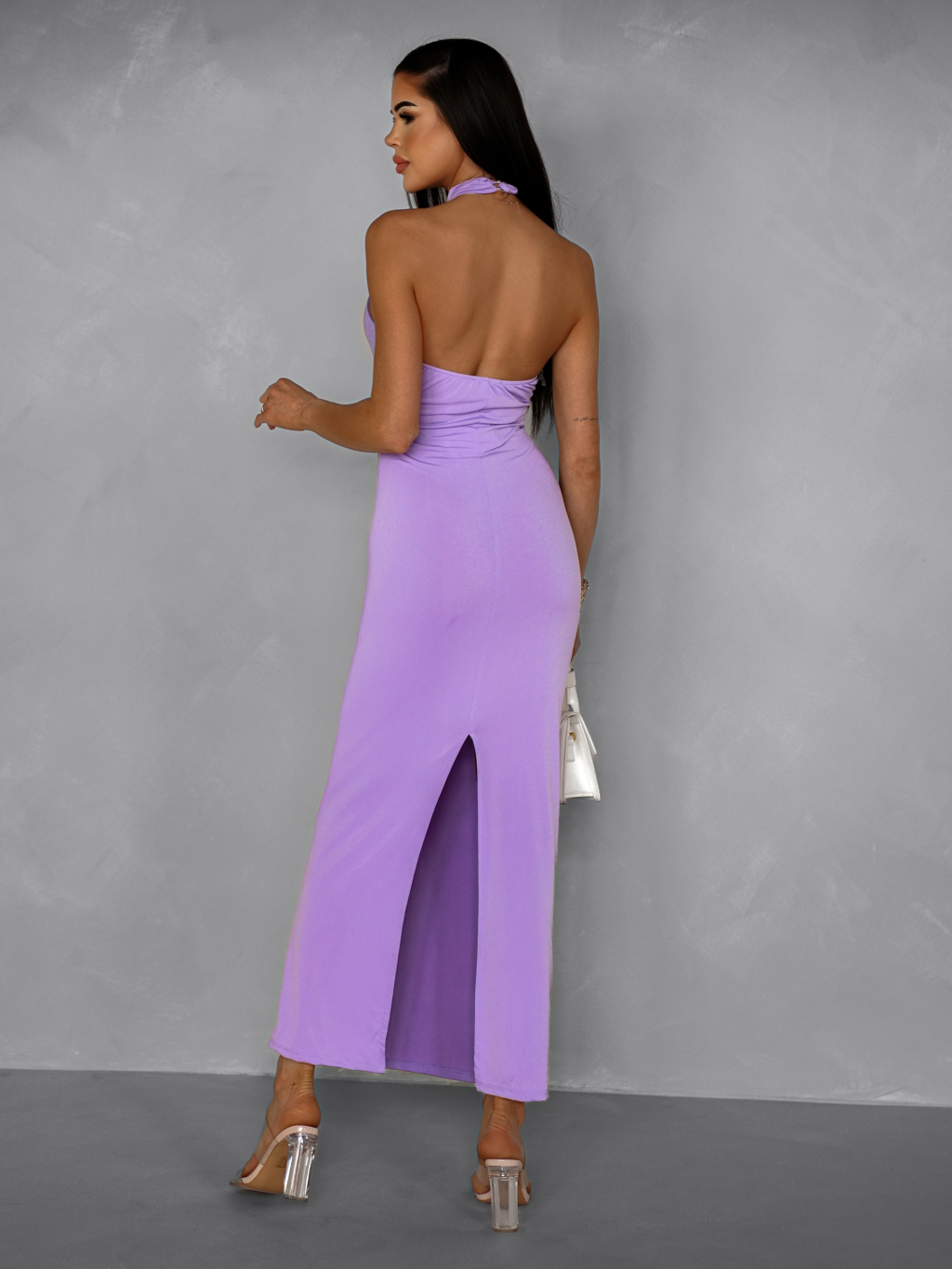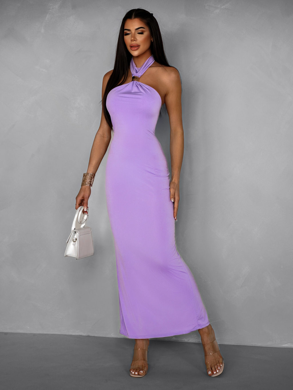 Fialové dlouhé elastické elegantní šaty GUARDA