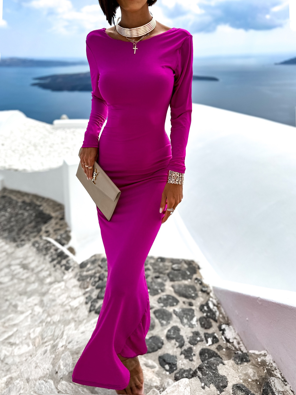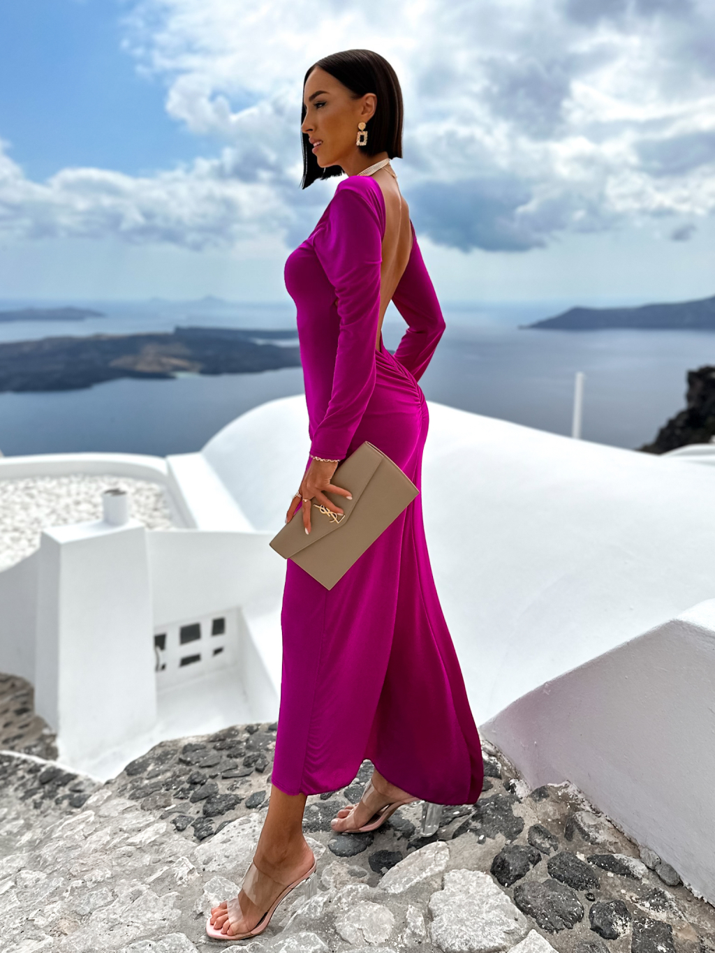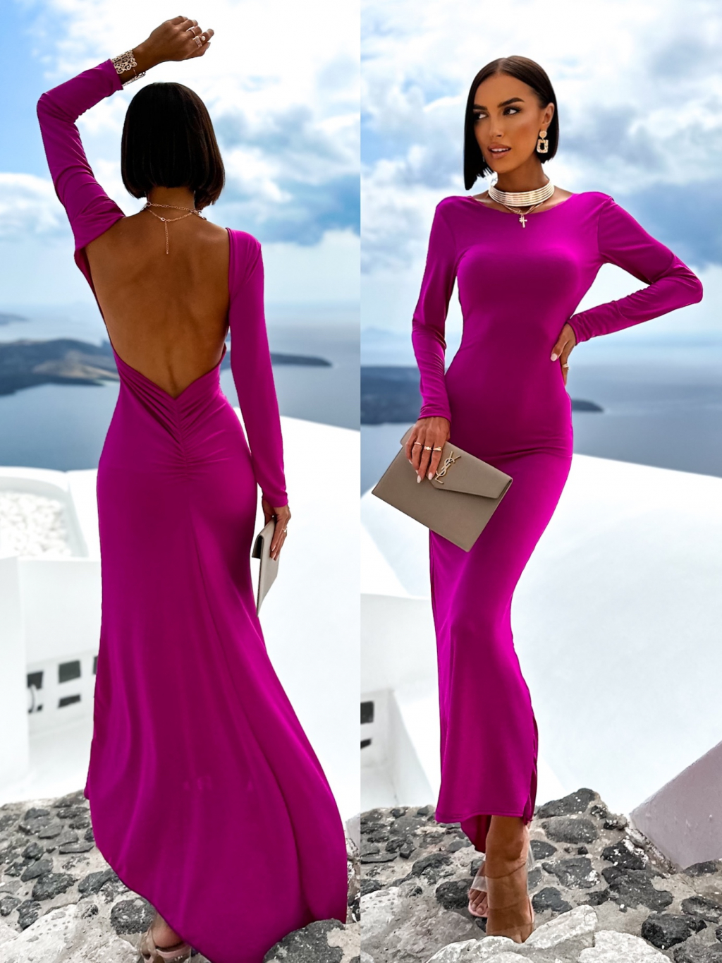 Fialové dlouhé elegantní šaty NINTENI s průstřihem na zádech