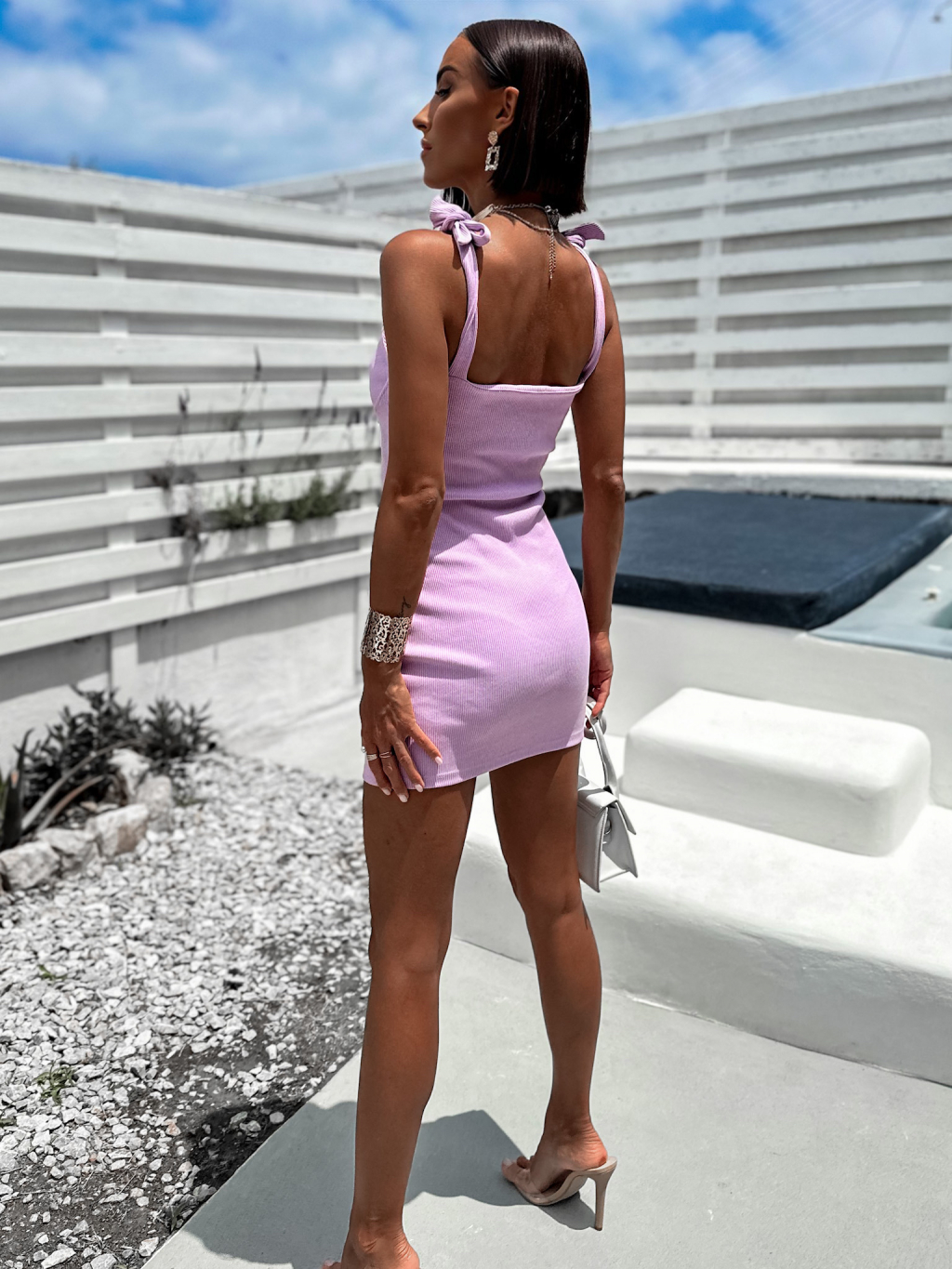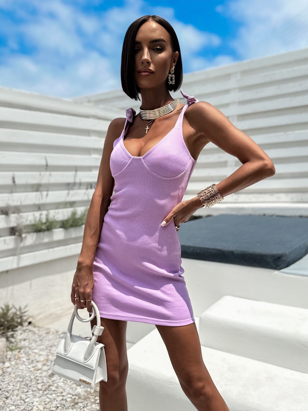 Fialové elegantní šaty MARLEN se zavazovacími ramínky