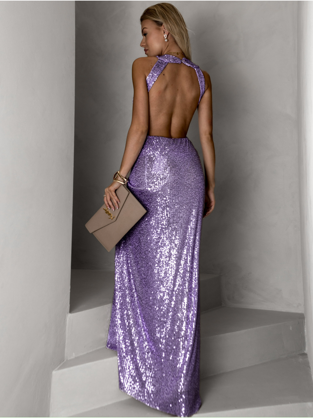 Fialové třpytivé dlouhé šaty AROGANTISEL s flitry