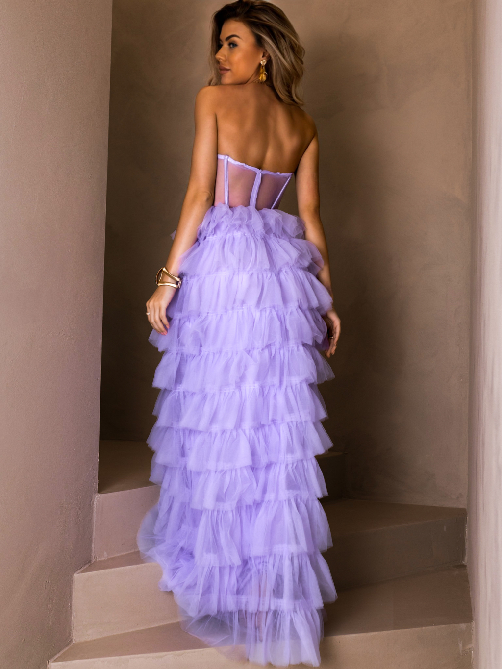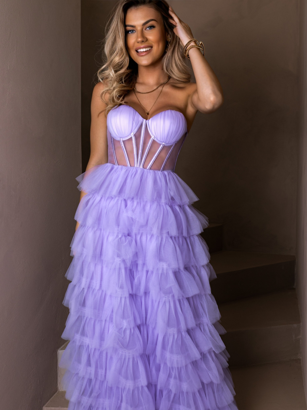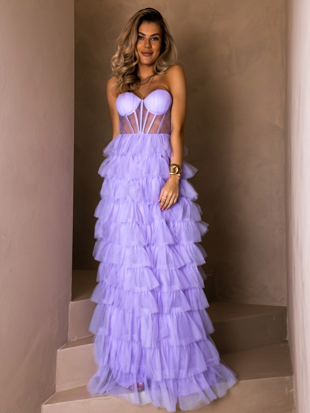 Fialové tylové plesové šaty ARIADNA s volánky