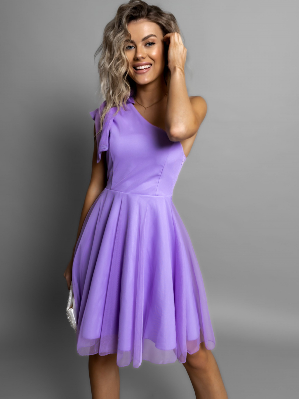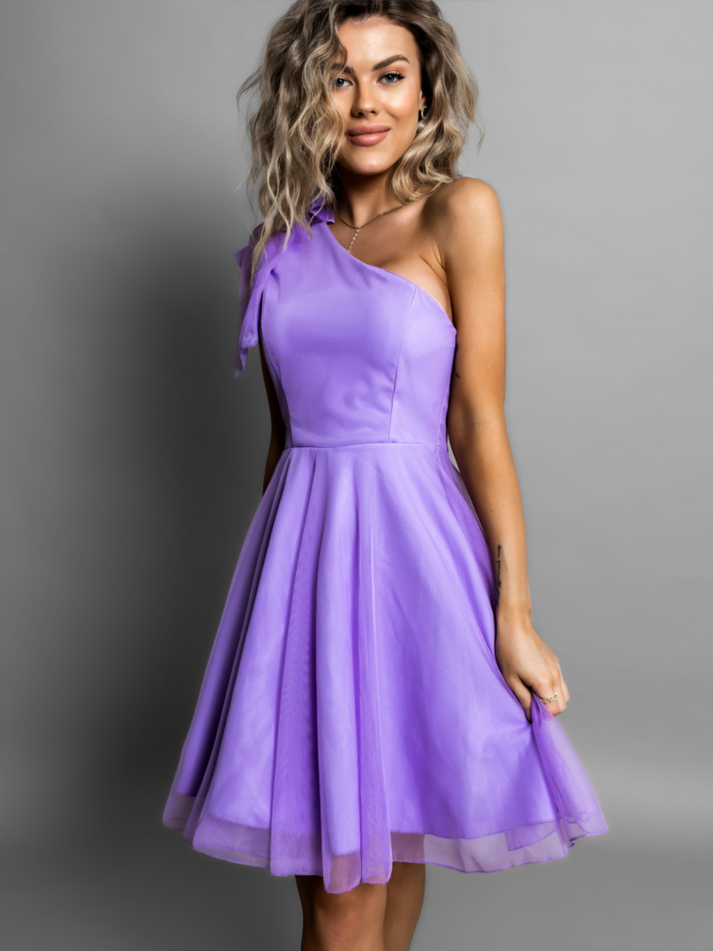 Fialové tylové šaty TANLIC na jedno rameno