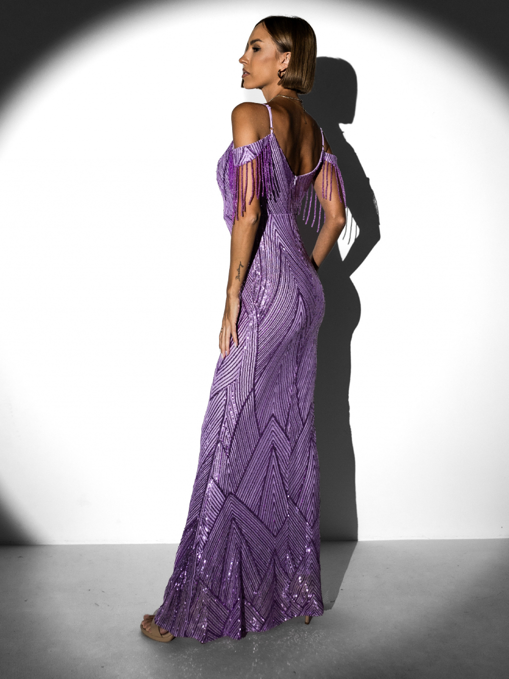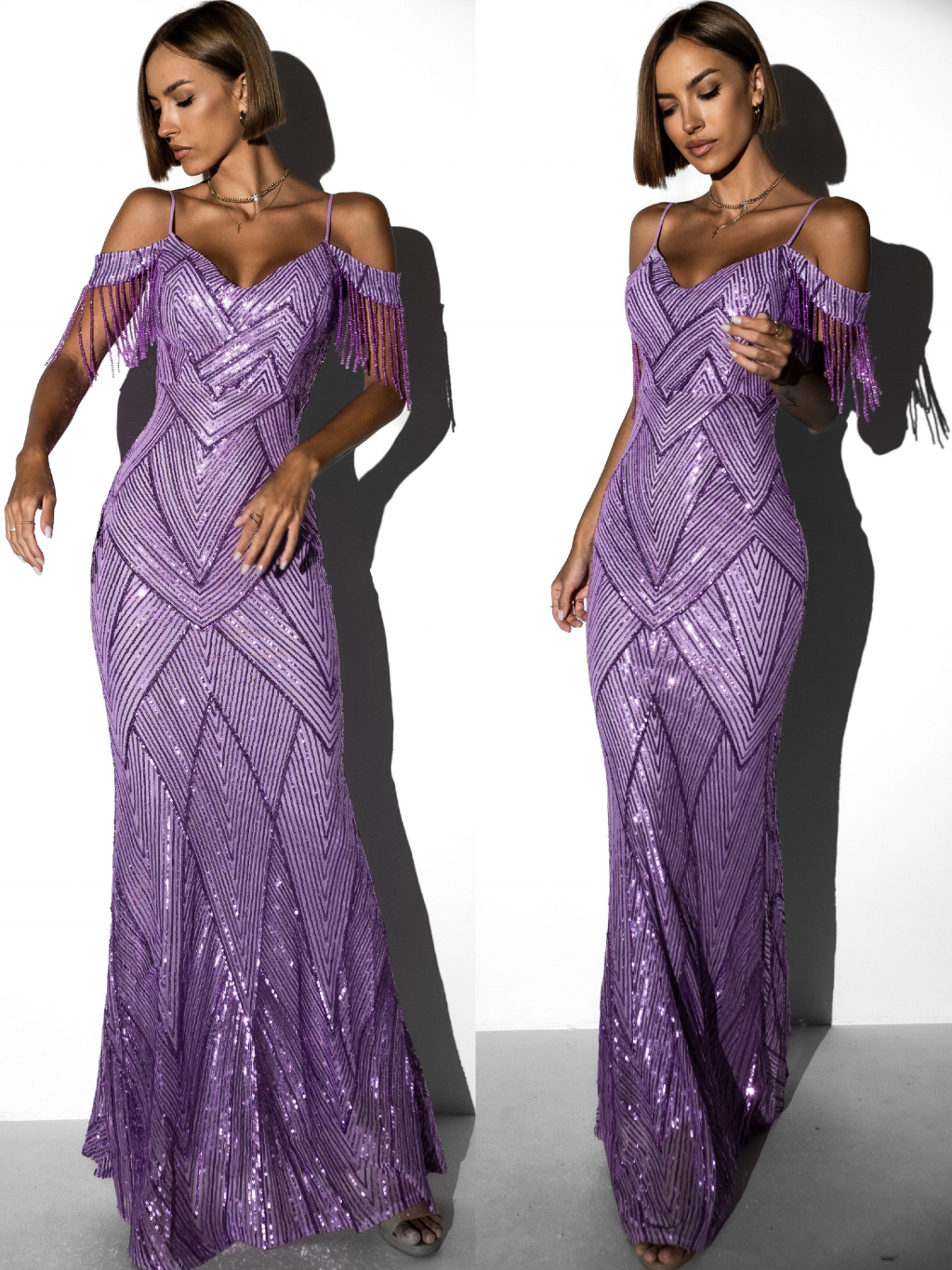 Fialové večerní třpytivé šaty NATSU s flitry