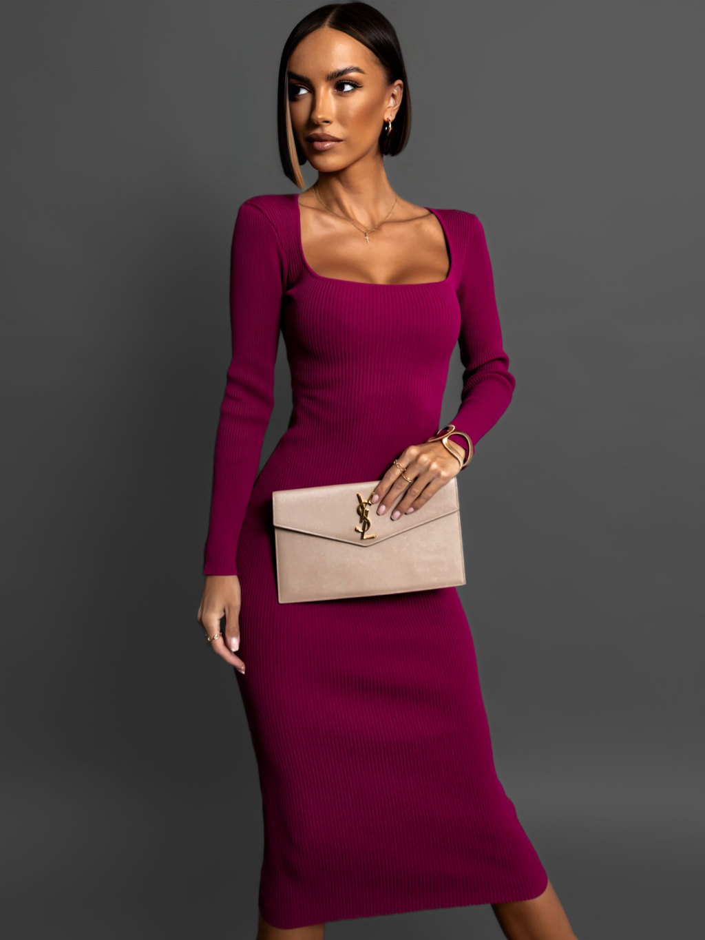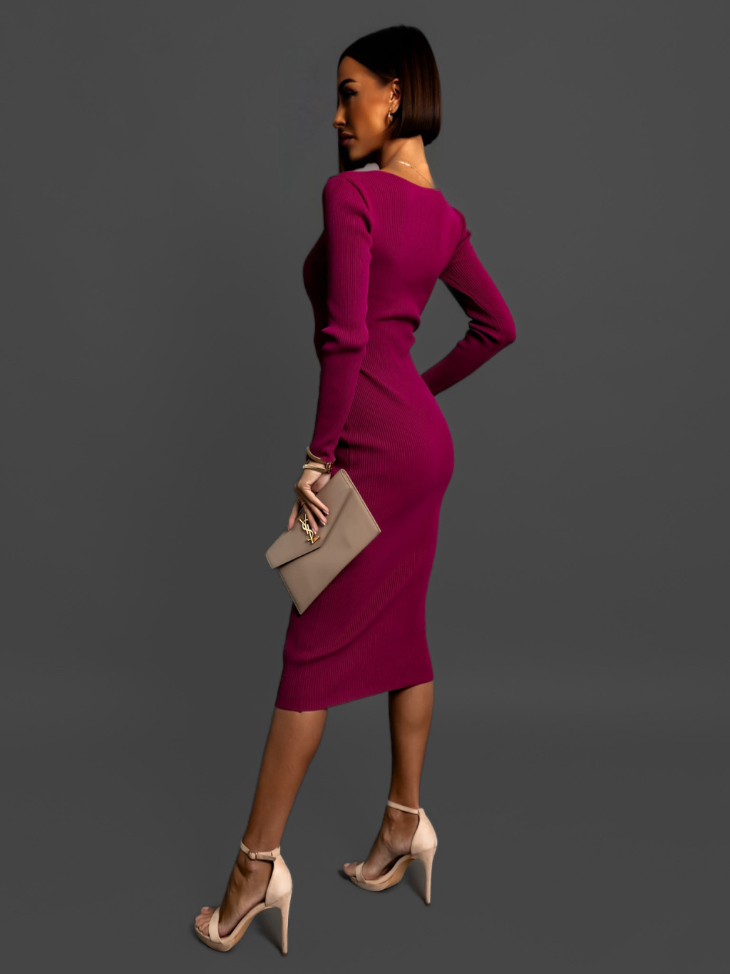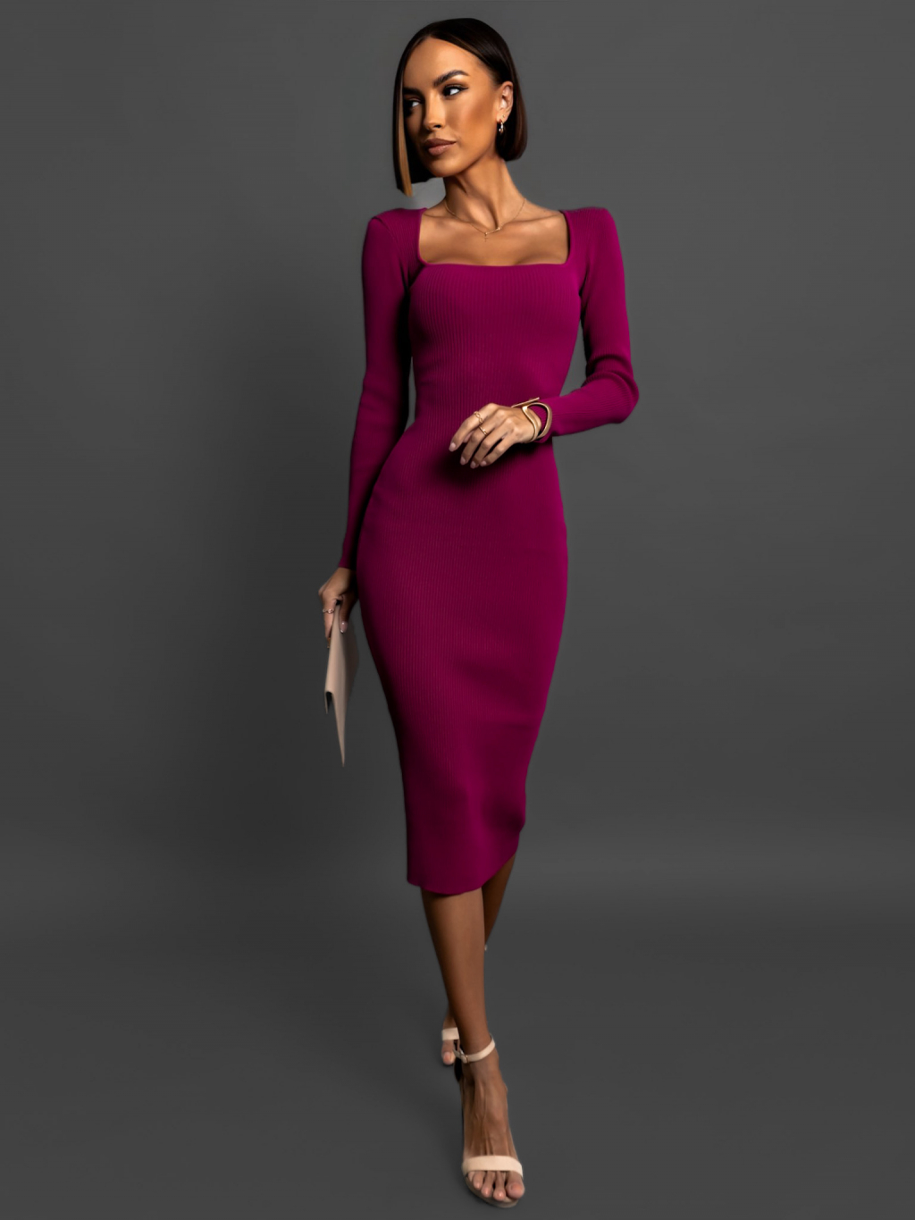 Fialové žebrované šaty PETOR s výstřihem