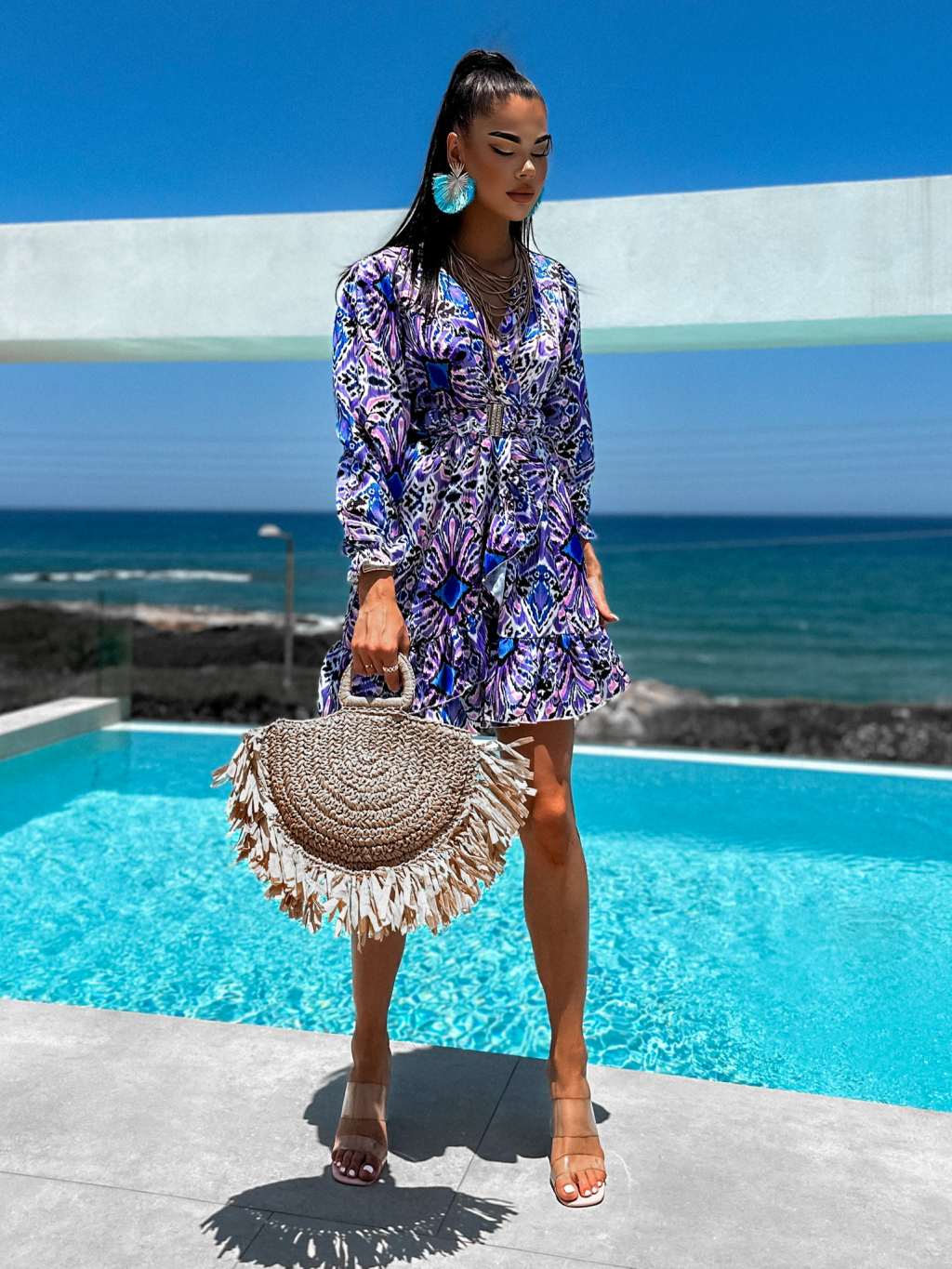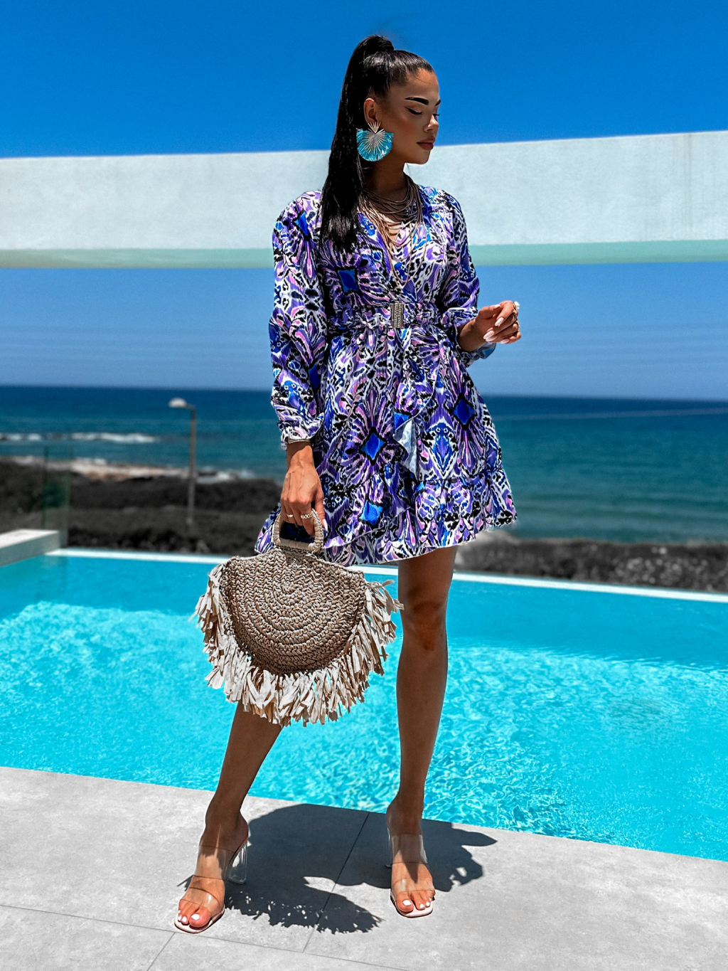 Fialovo modré šaty SNAPIL s páskem