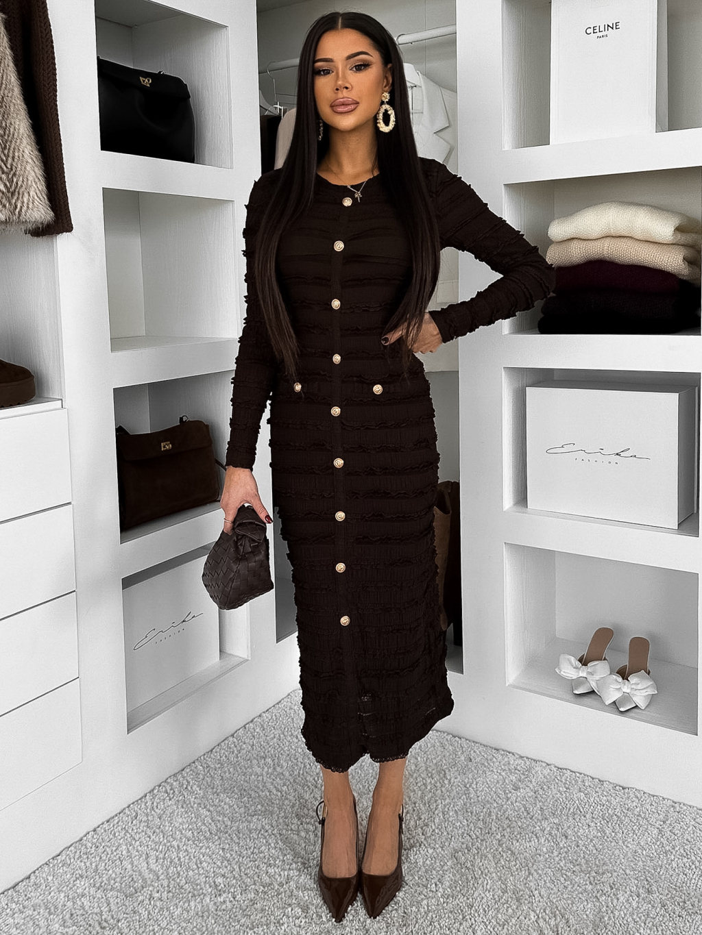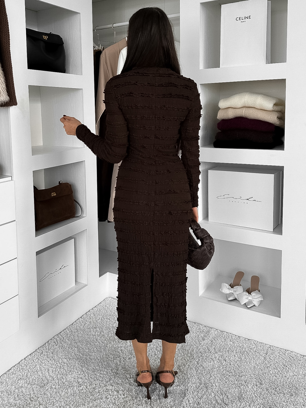 Hnědé elegantní pouzdrové dlouhé šaty DAREVIX s rozparkem