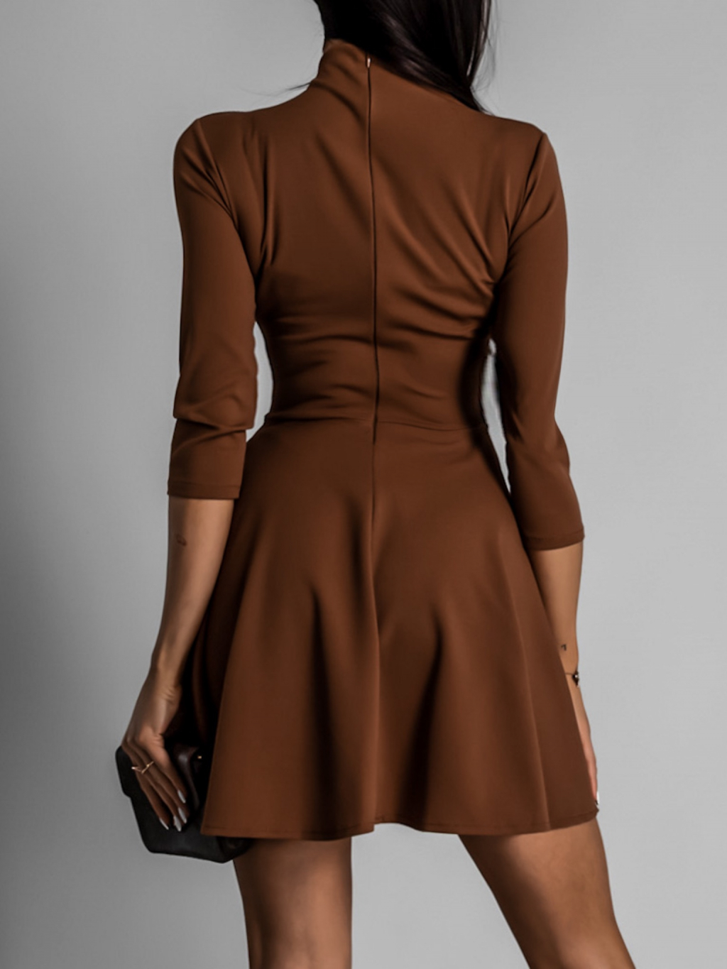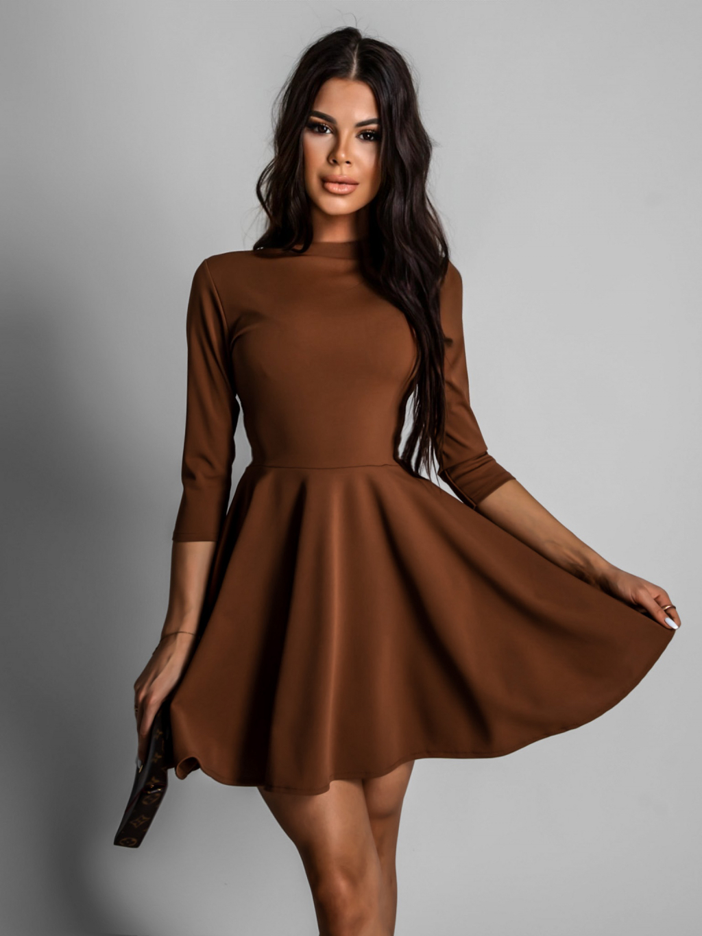 Hnědé elegantní šaty GROUND s dlouhým rukávem
