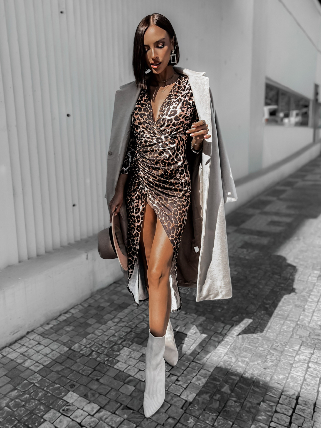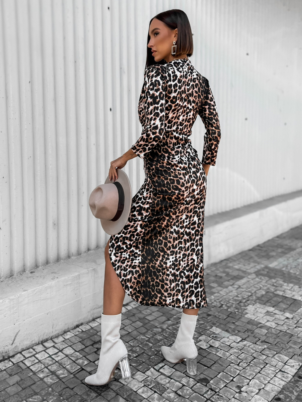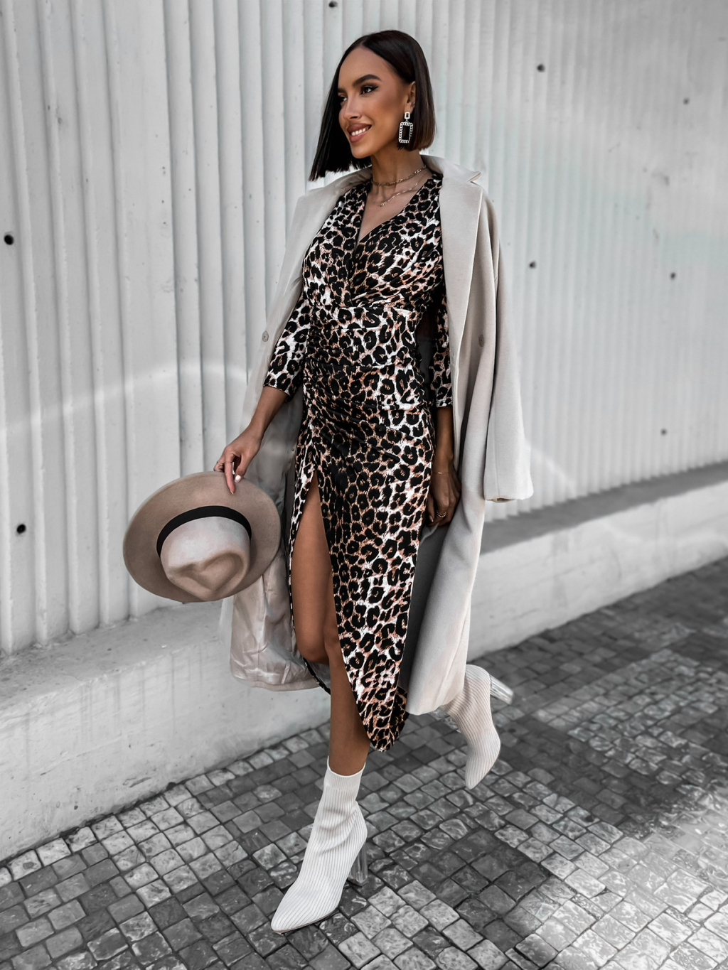 Hnědé elegantní šaty RESENTFUL s gepardím vzorem