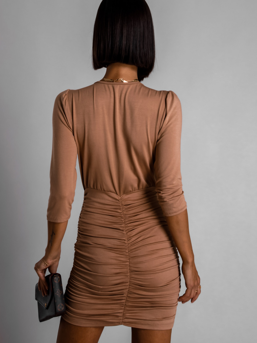 Hnědé elegantní šaty TALPI s dlouhým rukávem