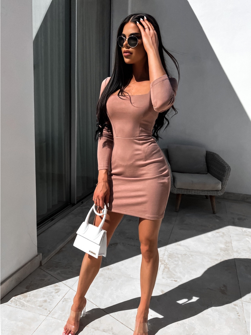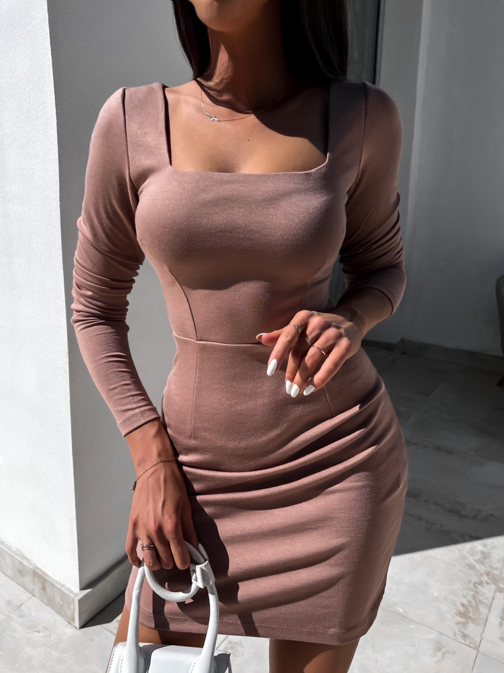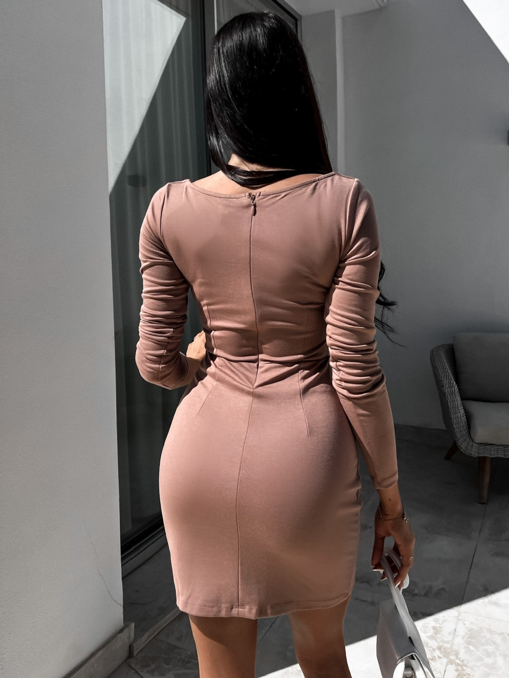 Hnědé elegantní šaty TEARNEY s dlouhým rukávem