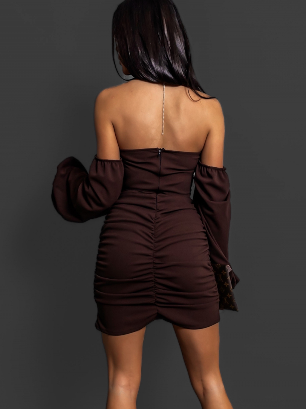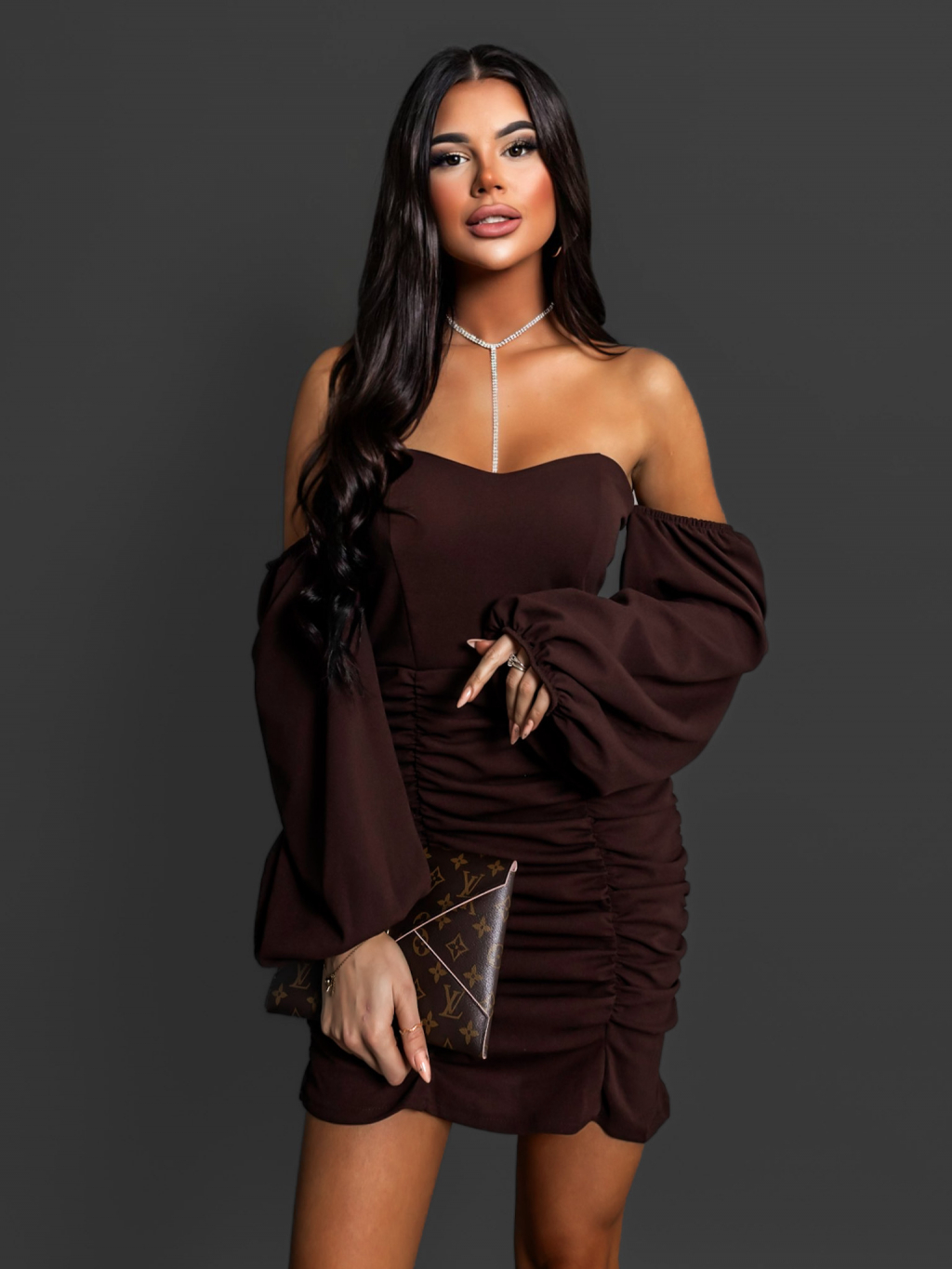 Hnědé koktejlové šaty SEREPIS s řasením