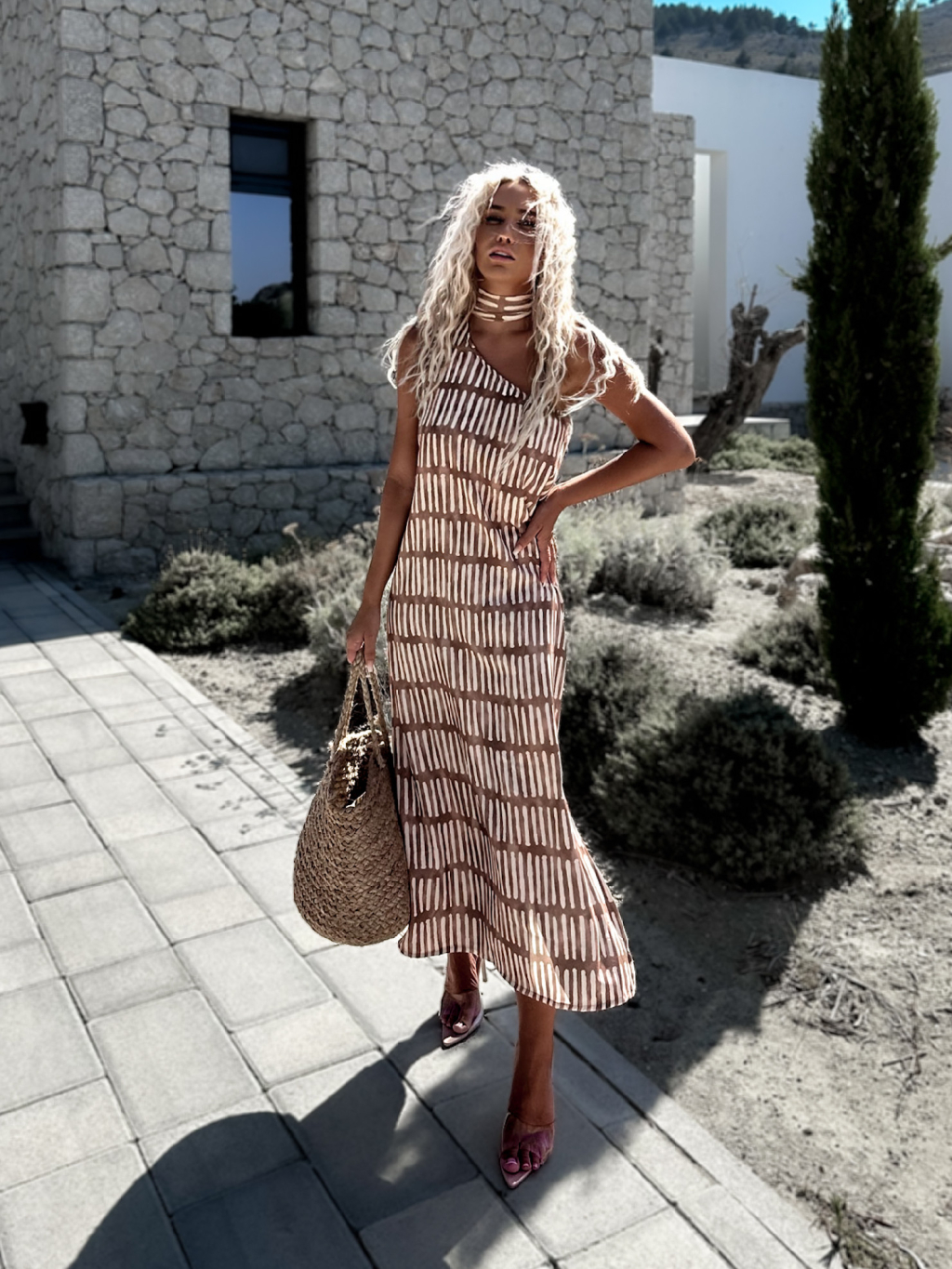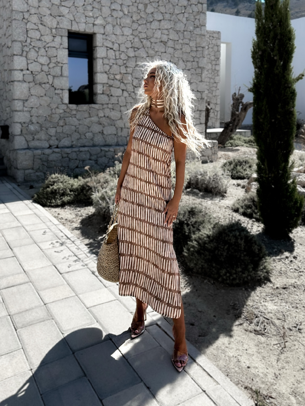 Hnědé šaty KRASPEN přes rameno