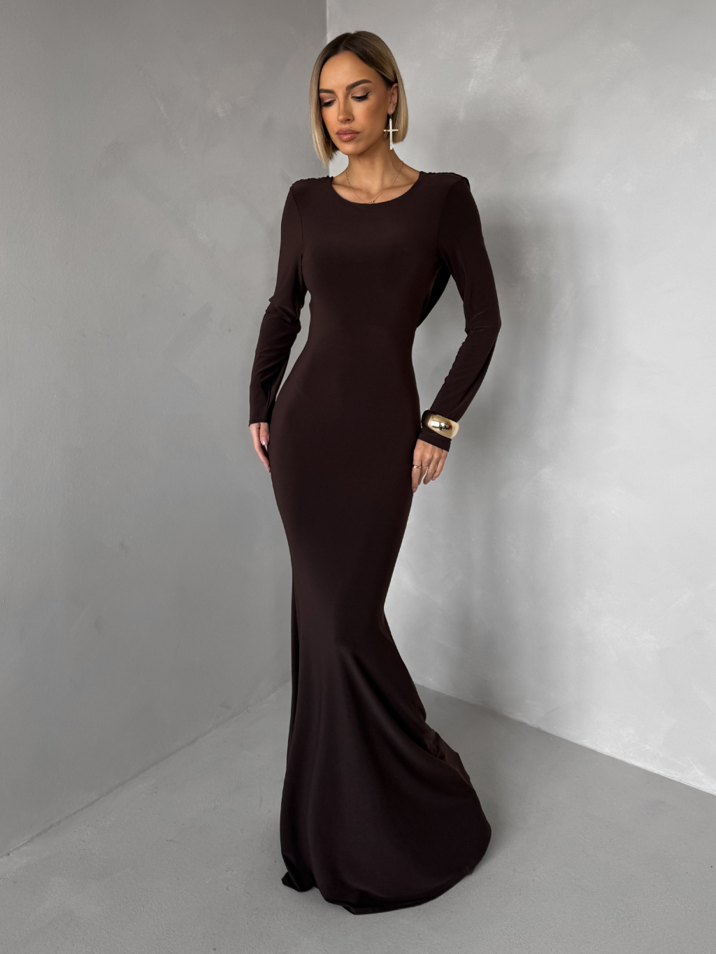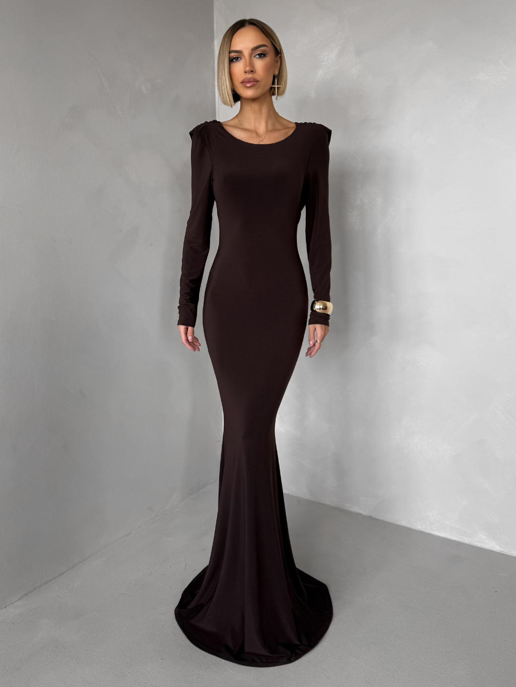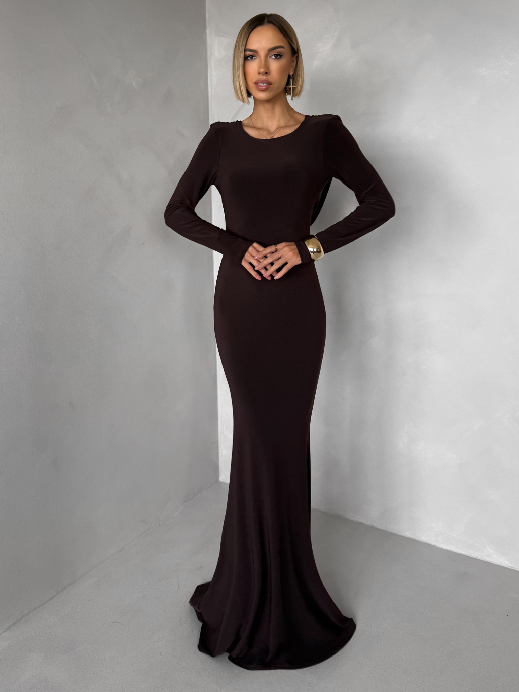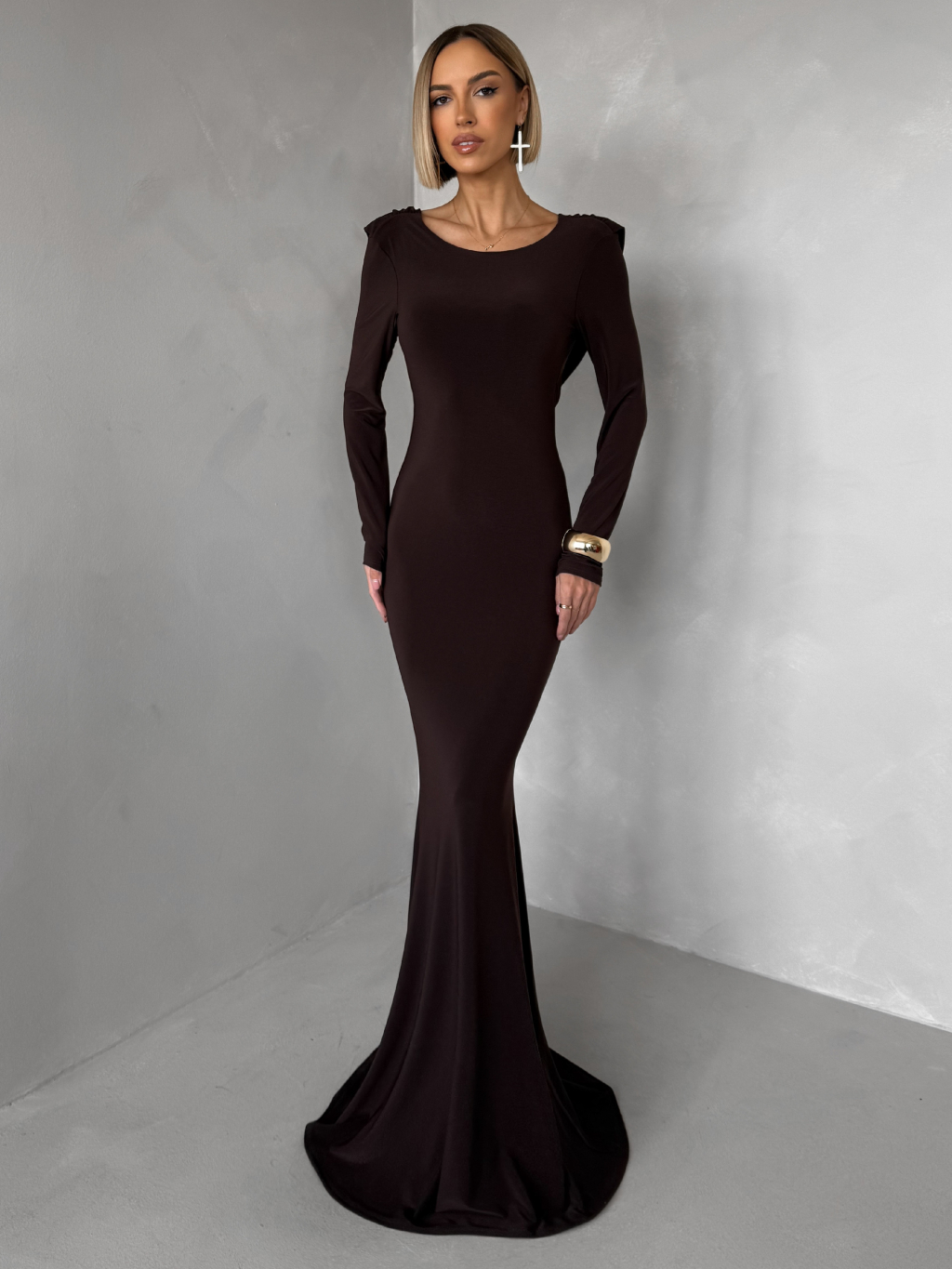 Hnědé společenské dlouhé šaty BRINOVA